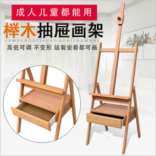 带抽屉红榉木画架 广告素描画架 画板套装油画架 成人水彩画架