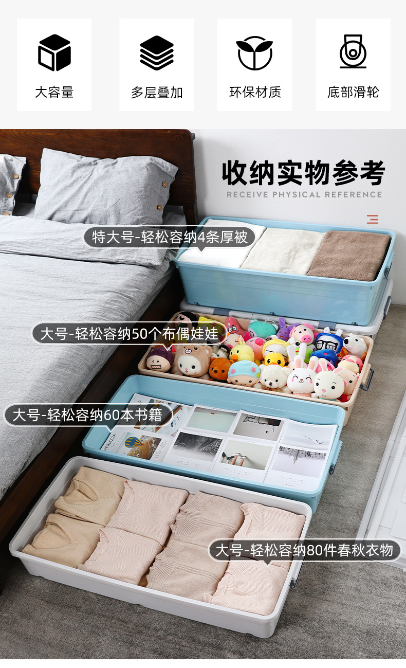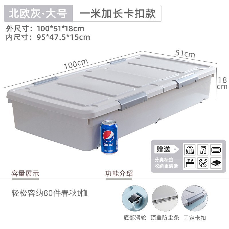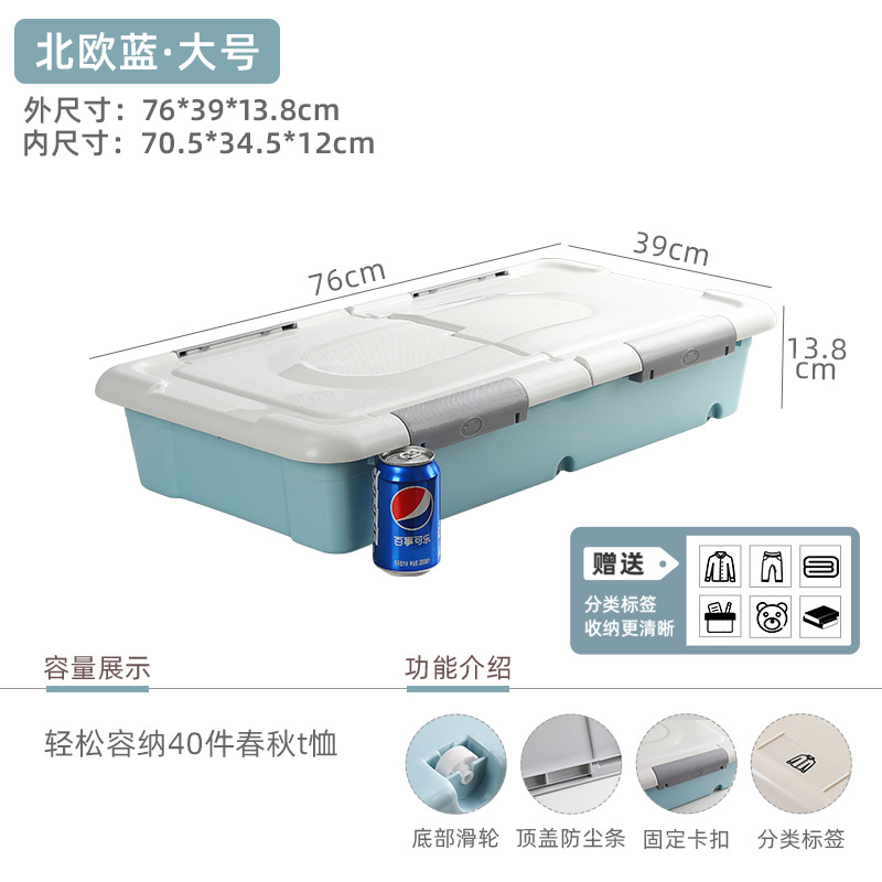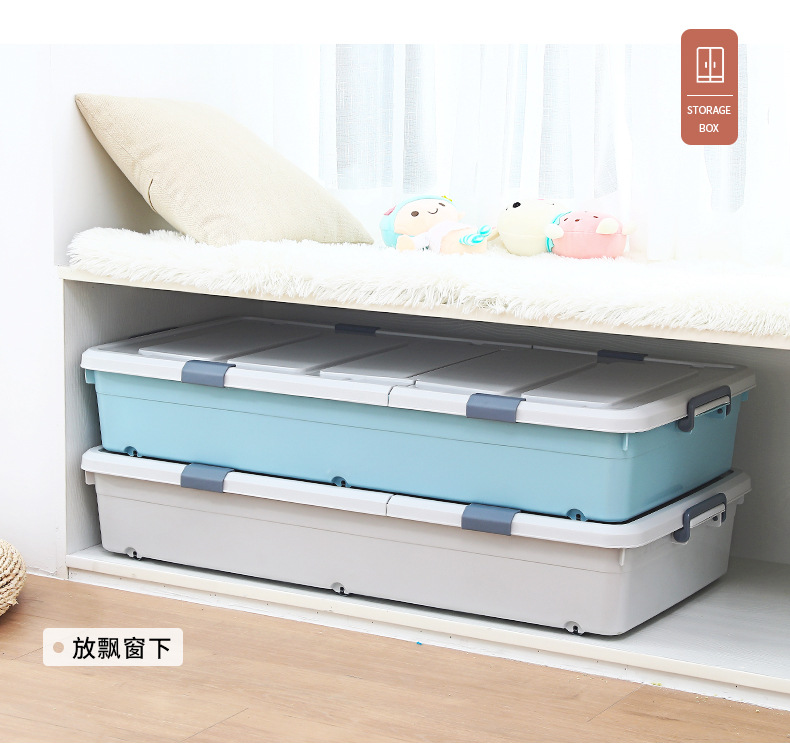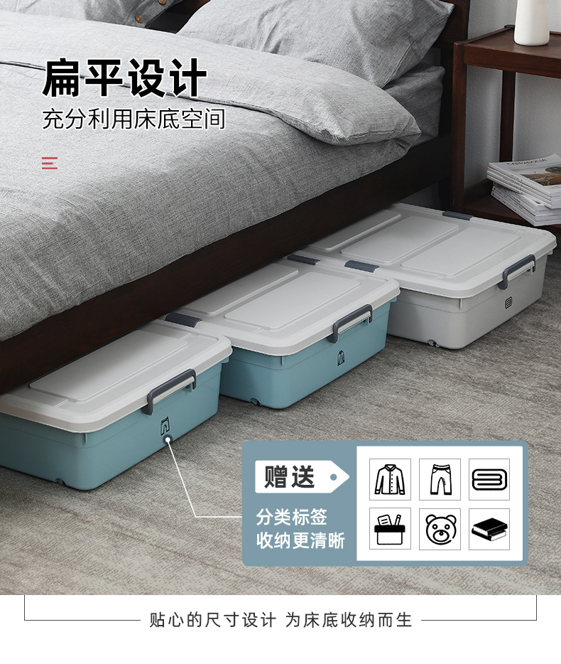 유네이 침대 밑 수납함 바퀴 달린 평평한 정리함 서랍형 가정용 플라스틱 수납함 서랍형 정리함스토어 가기