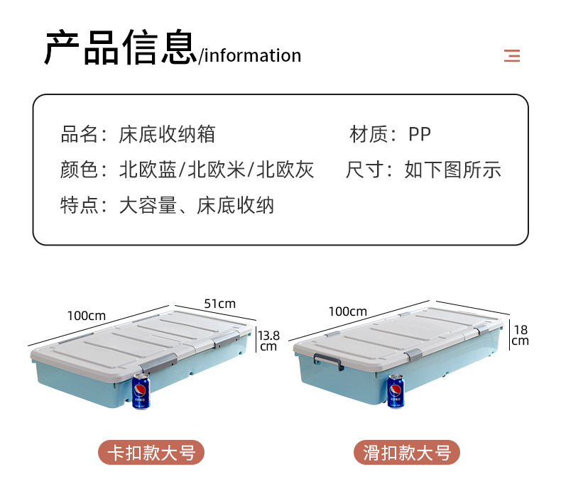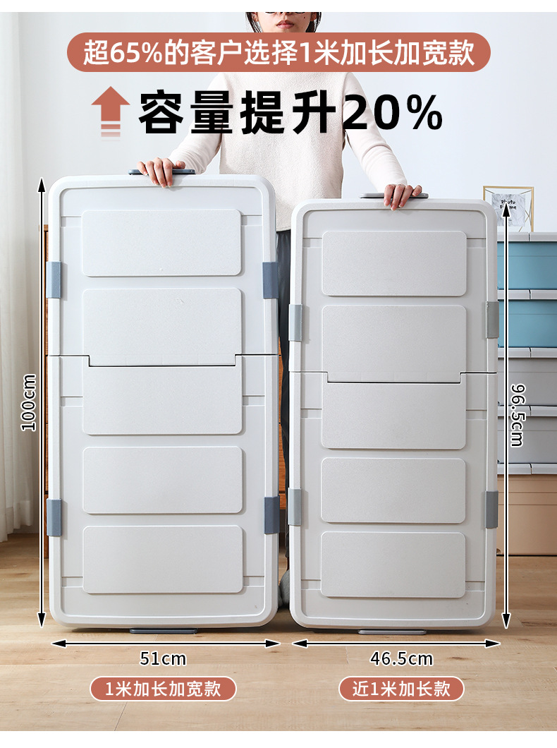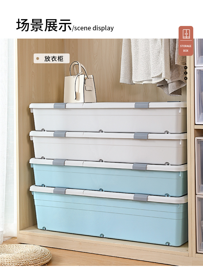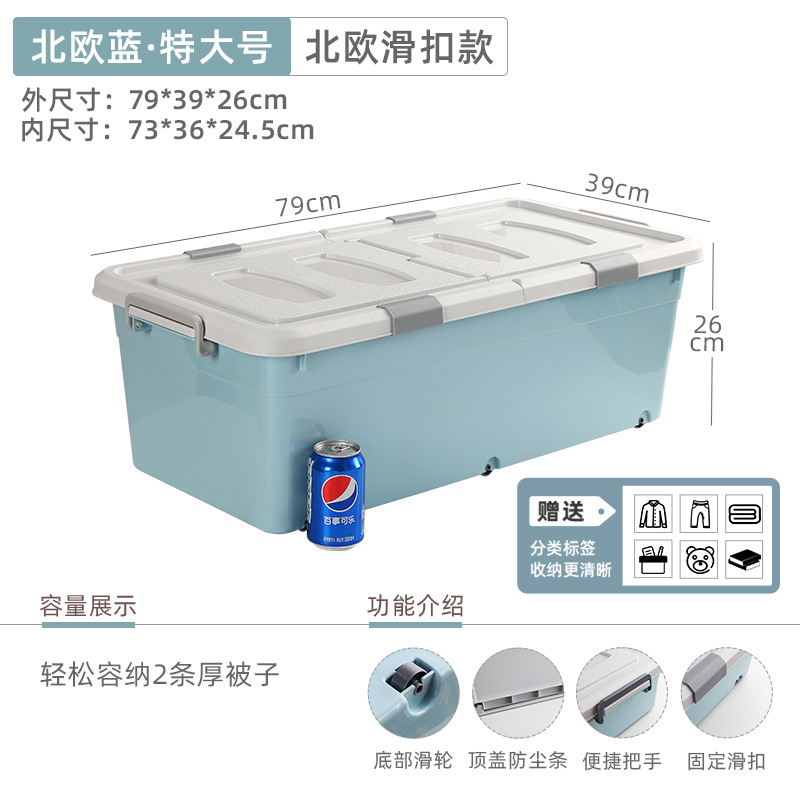 유네이 침대 밑 수납함 바퀴 달린 평평한 정리함 서랍형 가정용 플라스틱 수납함 서랍형 정리함스토어 가기