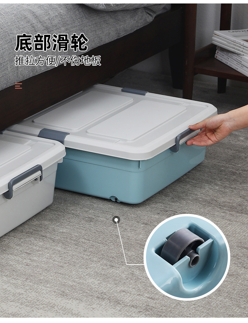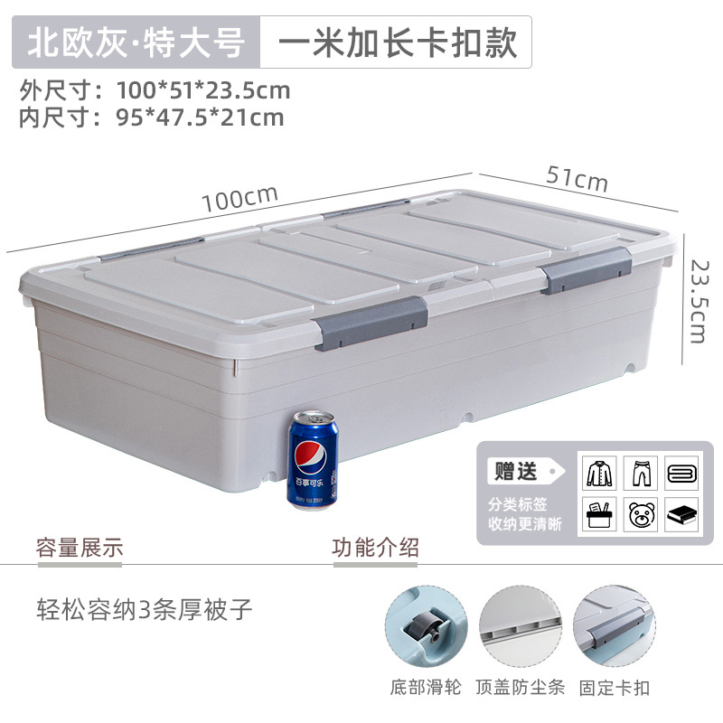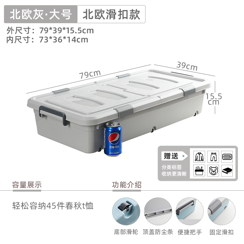 유네이 침대 밑 수납함 바퀴 달린 평평한 정리함 서랍형 가정용 플라스틱 수납함 서랍형 정리함