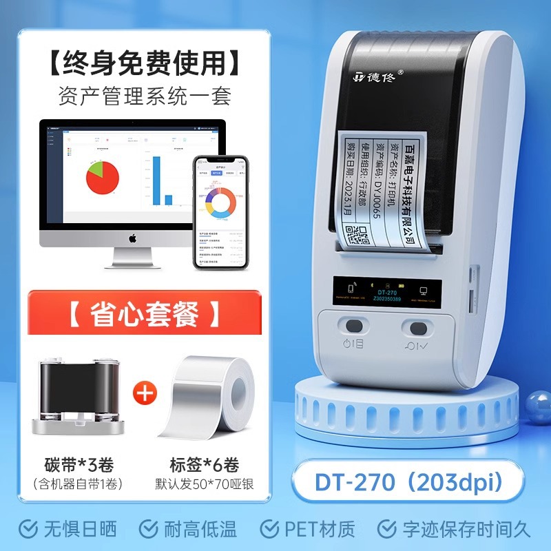 De Tong DT-270 고정 자산 라벨 프린터 디스크 기계 관리 시스템 열 전송 라벨 기계.스토어 가기