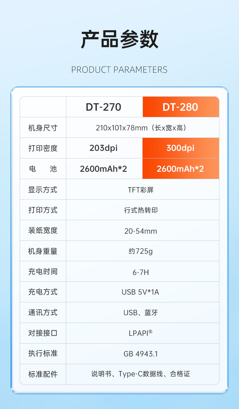• DT-280은 고화질 버전으로 인쇄가 더 선명합니다.