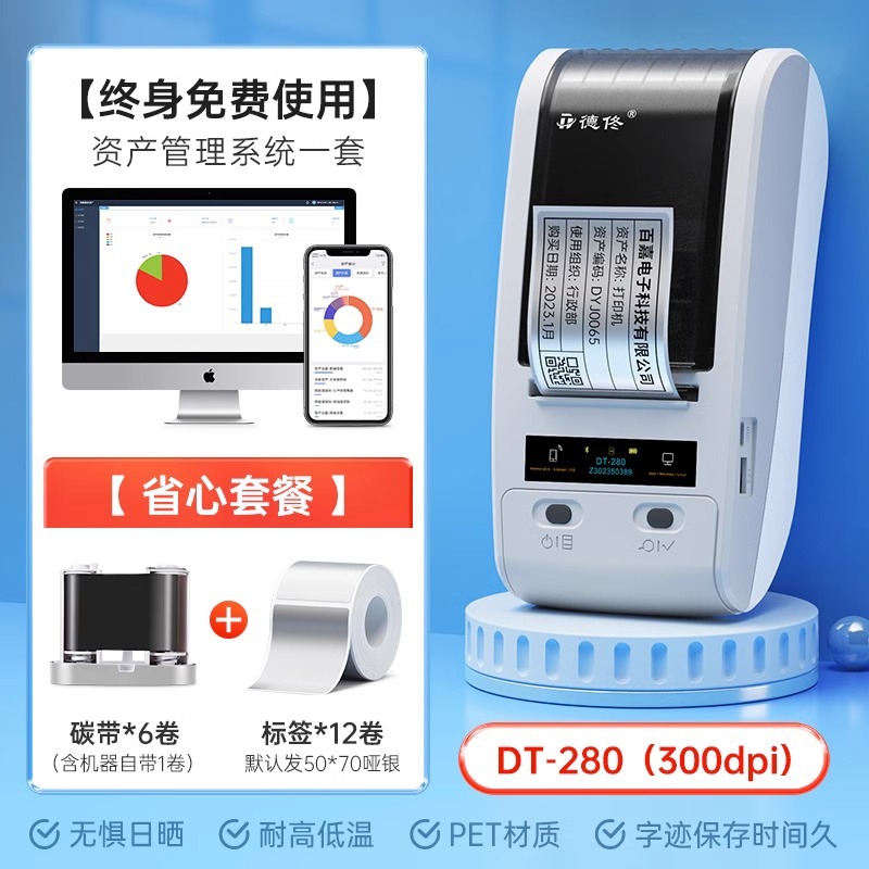 • DT-280 기계 + 라벨 12롤 [총 2400매] + 리본 6롤 + 무료 고정 자산 관리 소프트웨어