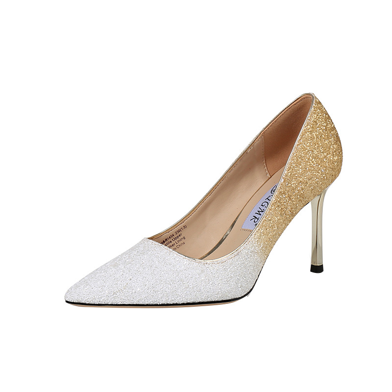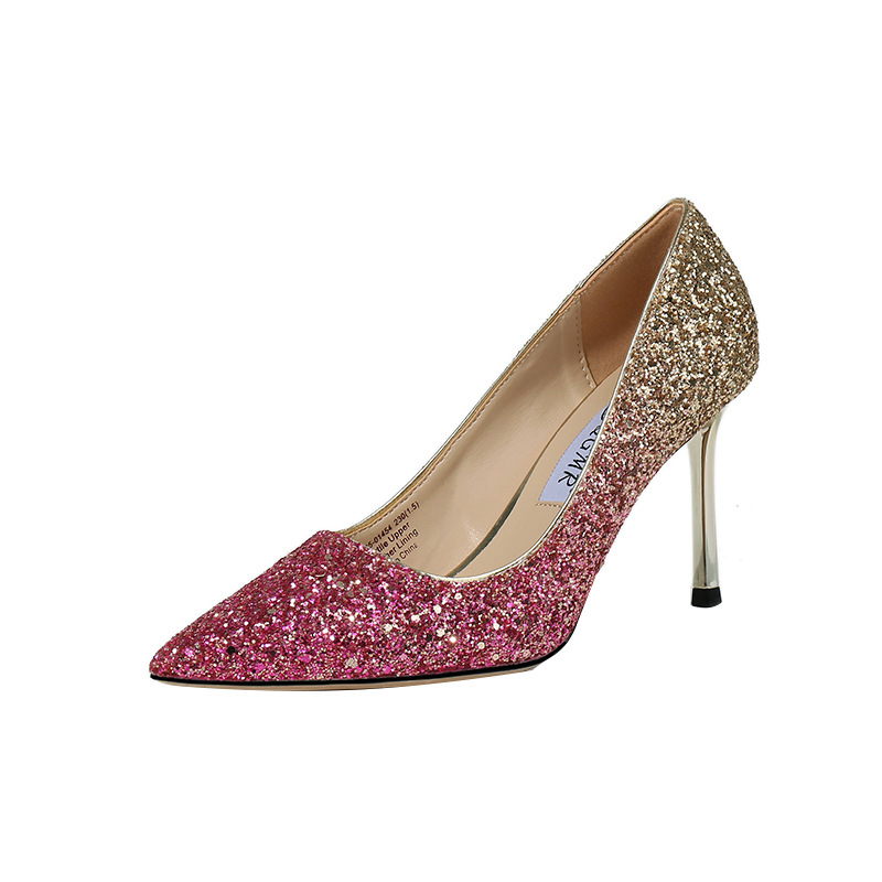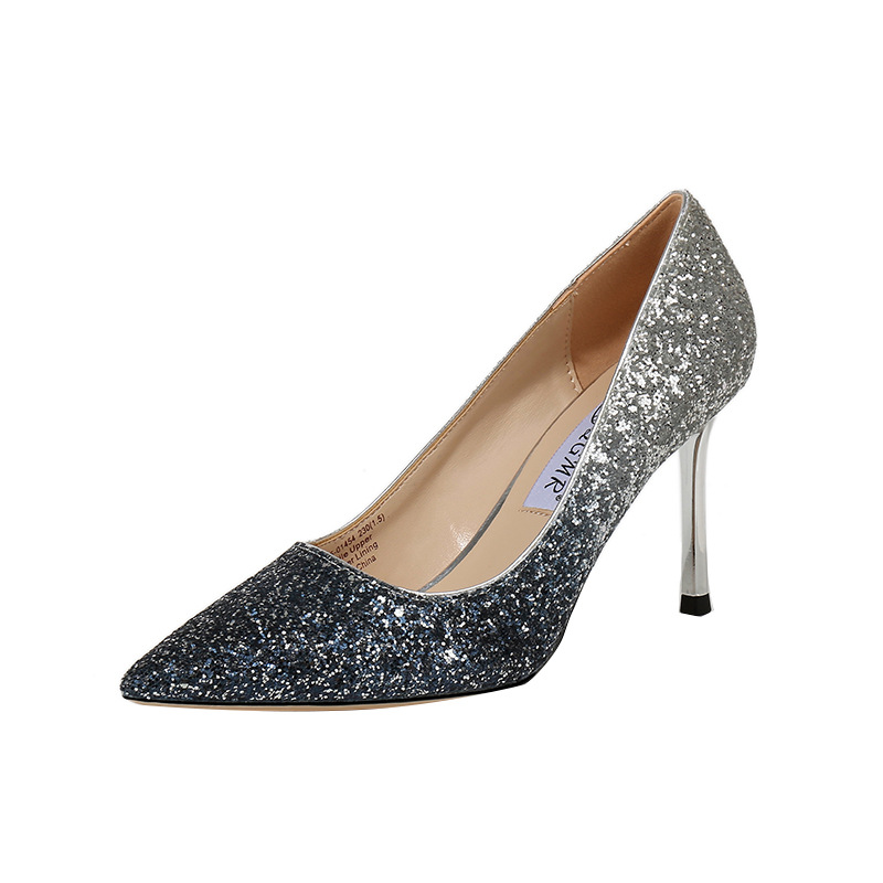 그라데이션 크리스탈 슈즈 2023 봄 여름 스틸레토 힐 뾰족코 스팽글 섹시 하이힐 여성용 도매 하이힐 스틸레토스토어 가기
