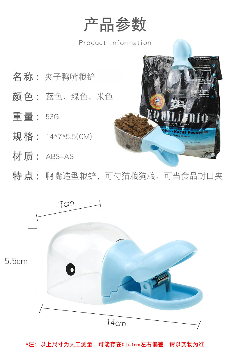 귀여운 Duckbill 애완 동물 숟가락 개 음식 삽 테디 고양이 다기능 음식 숟가락 고양이 음식 밀봉 신선한 유지 클립 6스토어 가기