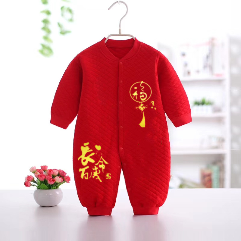 아기 따뜻한 점프 슈트 빨간 축제 100 일 보름달 세트 아기 봄과 가을 옷 제조 업체 새로운 0-1 세스토어 가기