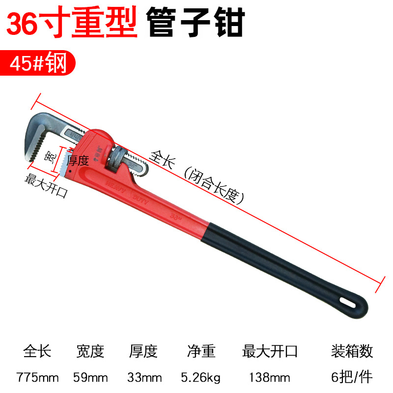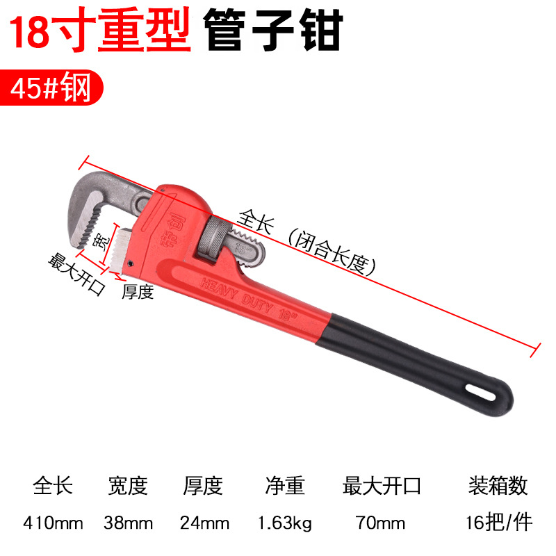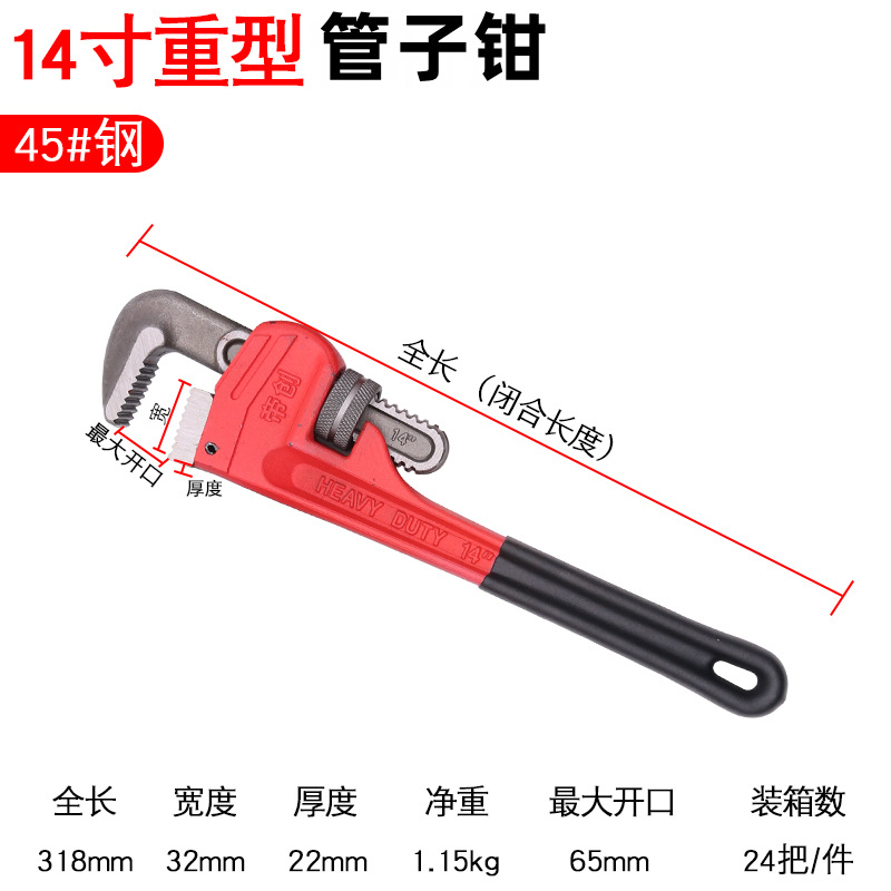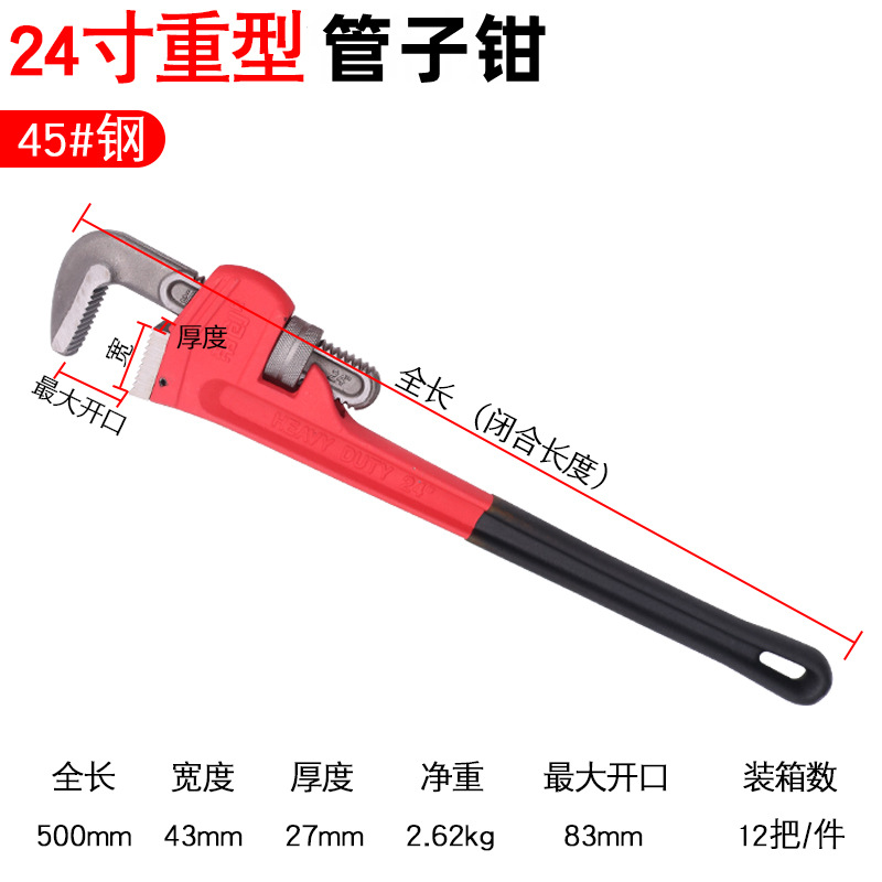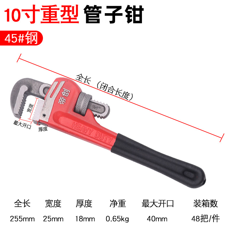 1.用手旋转调节螺母,使活动钳口和固定钳口之间的开口尺寸所需夹持管径尺寸,钳口卡住管径不得滑动,然后用手握柄体施加旋转力矩,使管道旋转,直至旋紧或旋松为止。