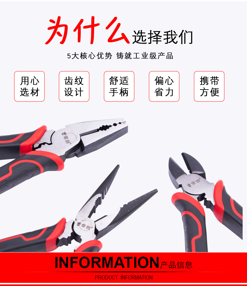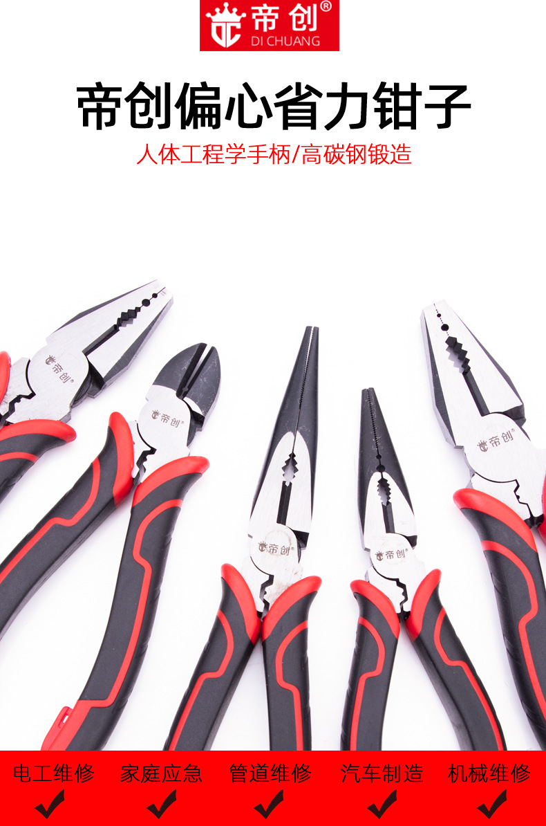 厂家直销帝创台式省力6寸尖嘴钳斜嘴钳8寸钢丝钳多功能五金工具