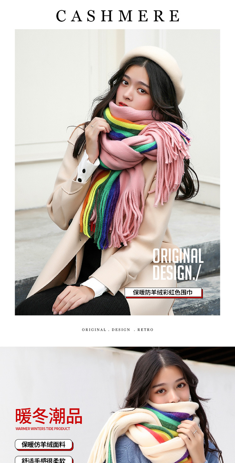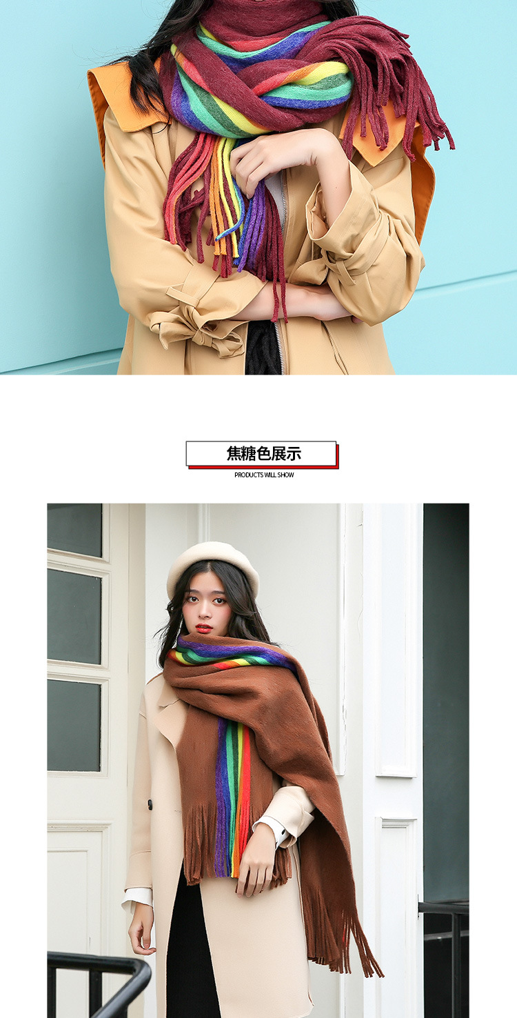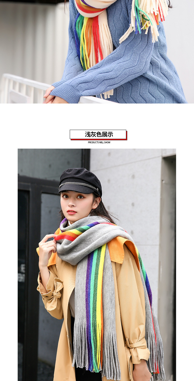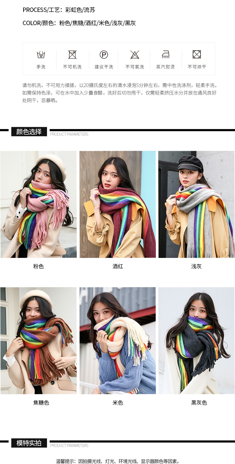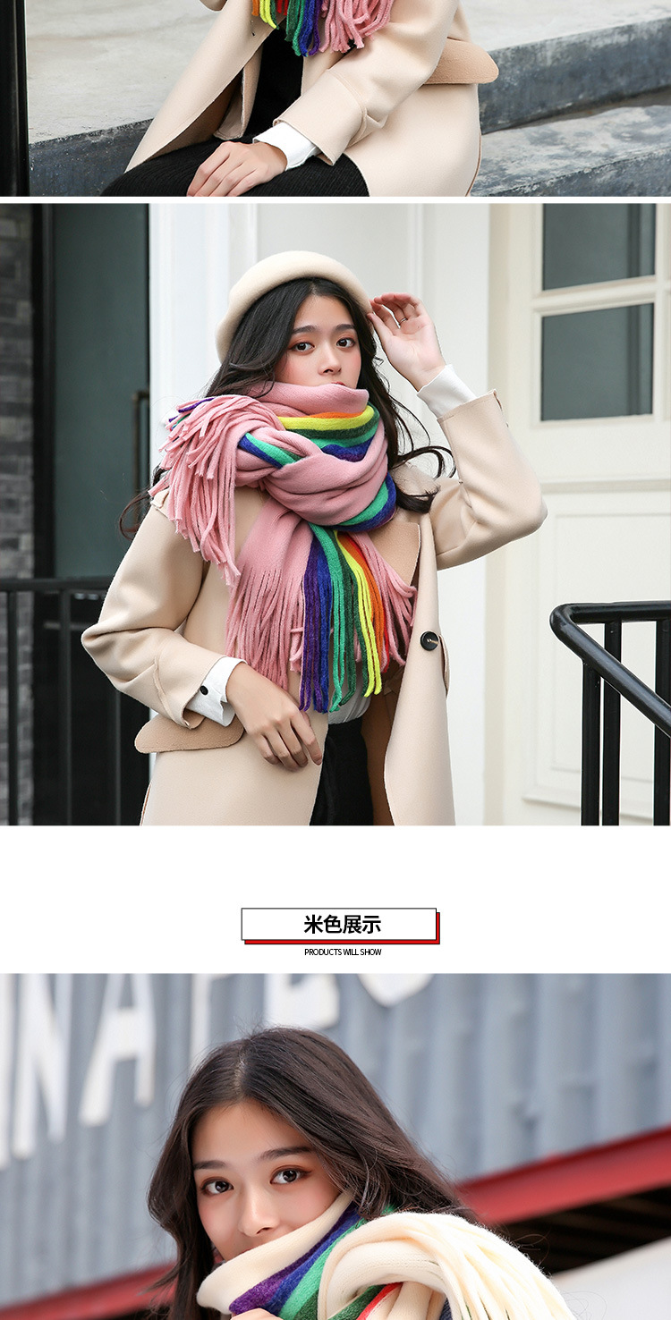 레인보우 스카프 여성용 가을과 겨울 한국 스타일 모든 경기 학생 숄 소녀의 부드러운 소녀의 겨울 두꺼운 따뜻한 목 이중 사용스토어 가기
