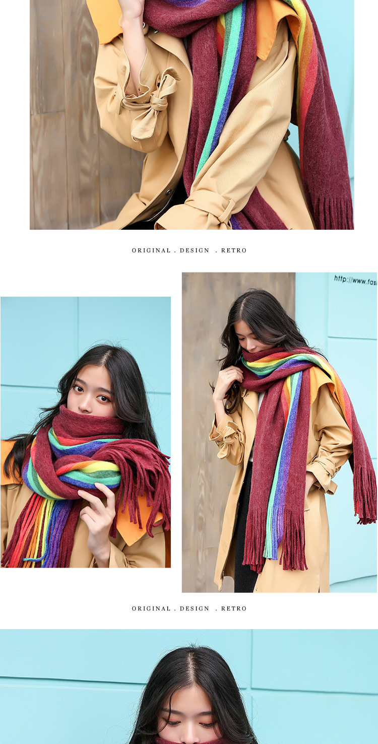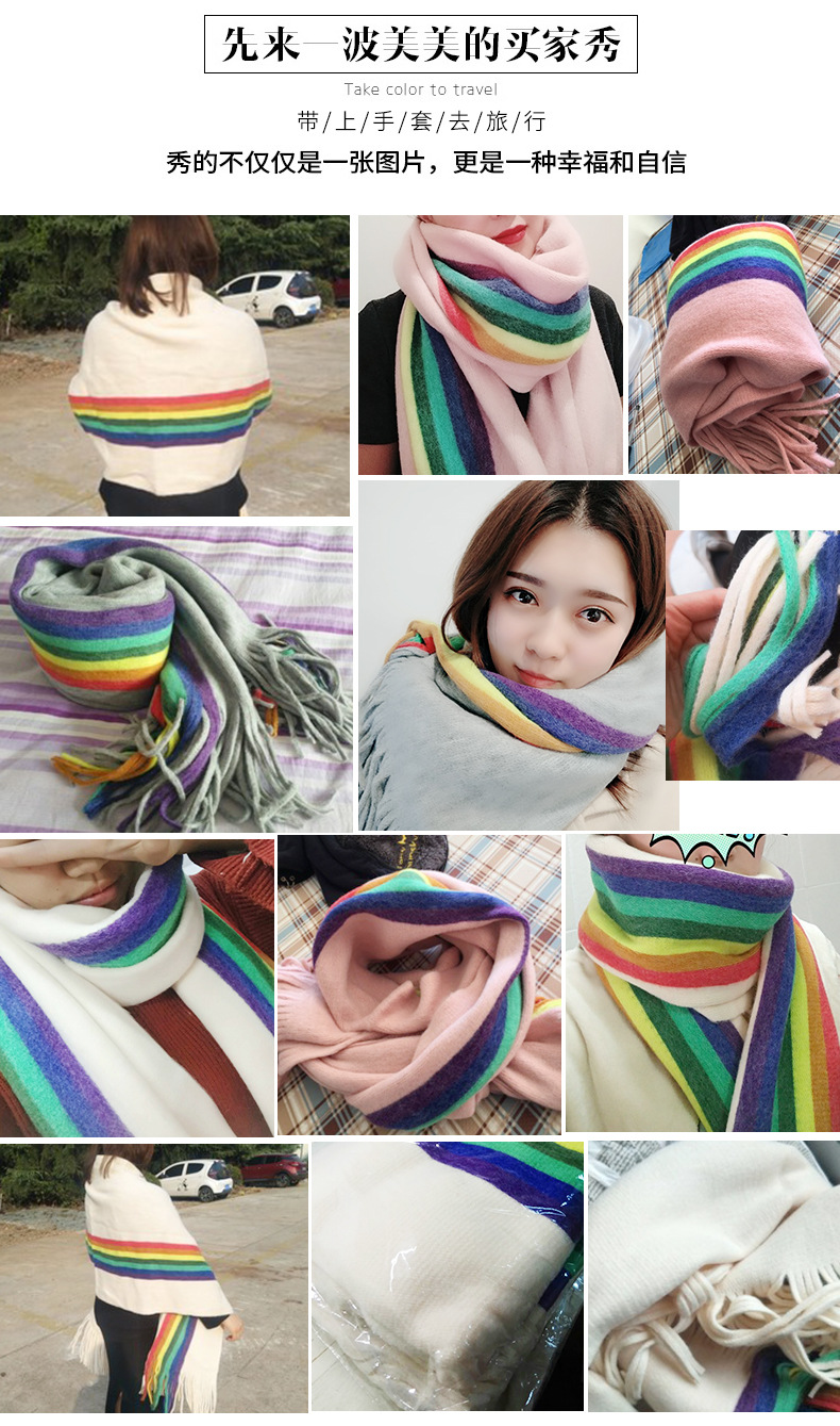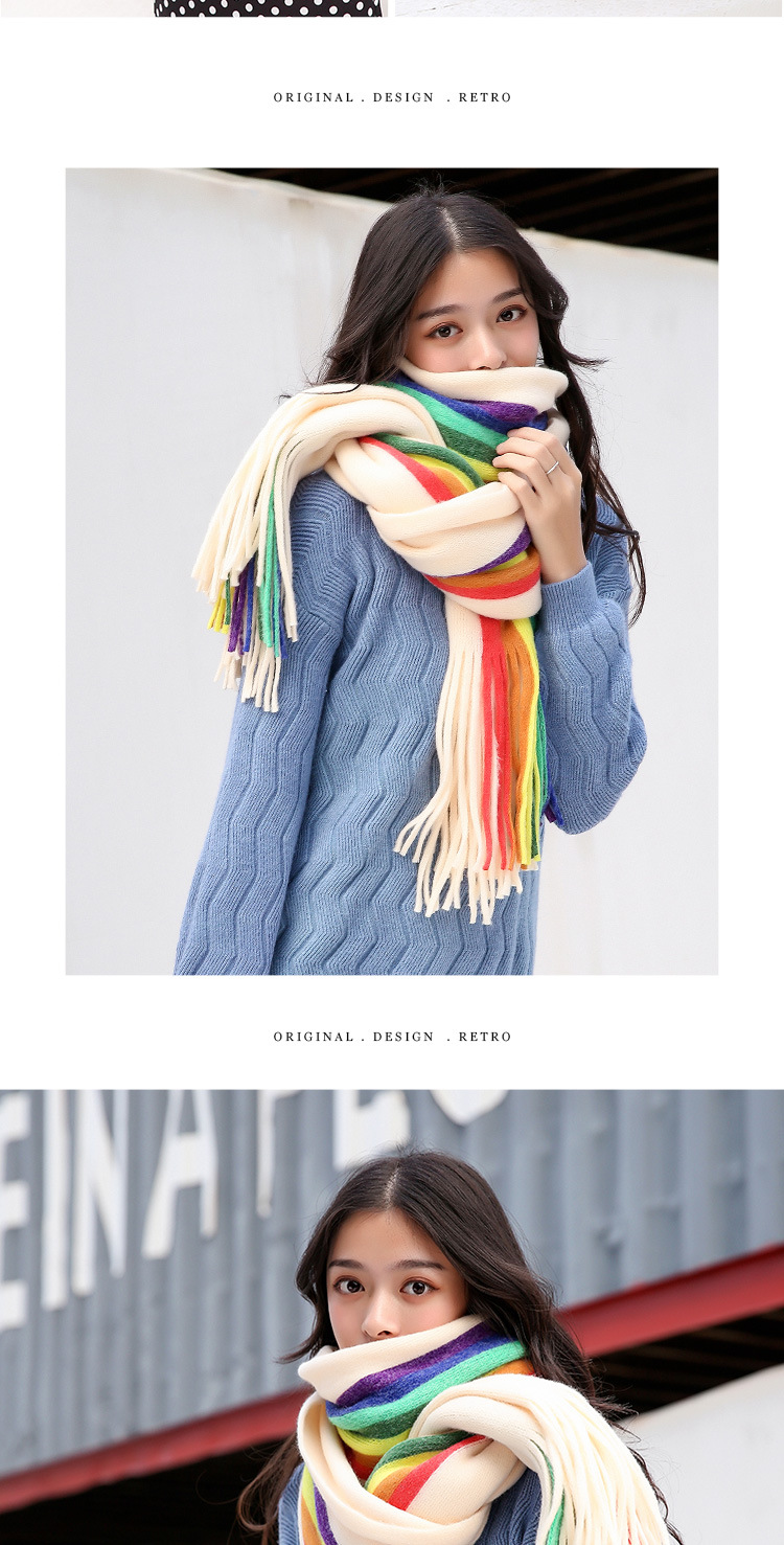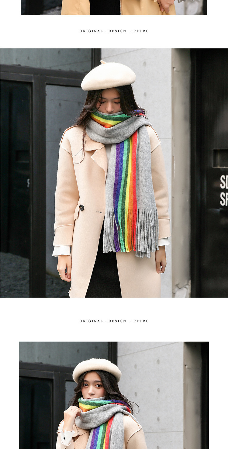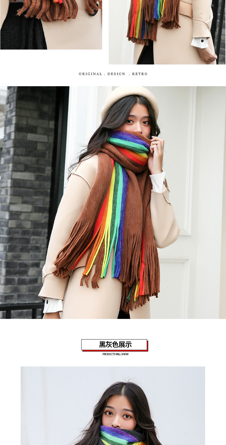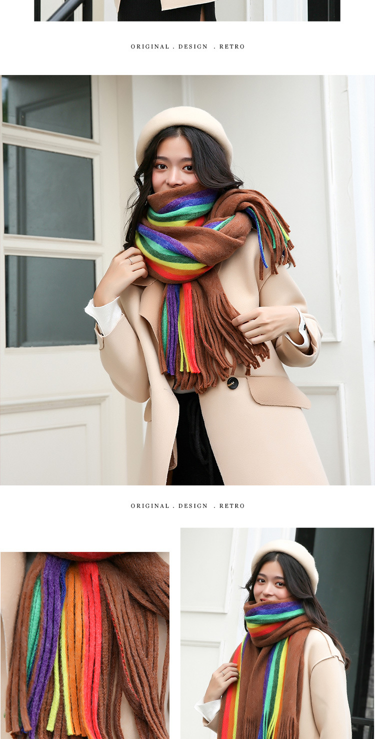레인보우 스카프 여성용 가을과 겨울 한국 스타일 모든 경기 학생 숄 소녀의 부드러운 소녀의 겨울 두꺼운 따뜻한 목 이중 사용스토어 가기