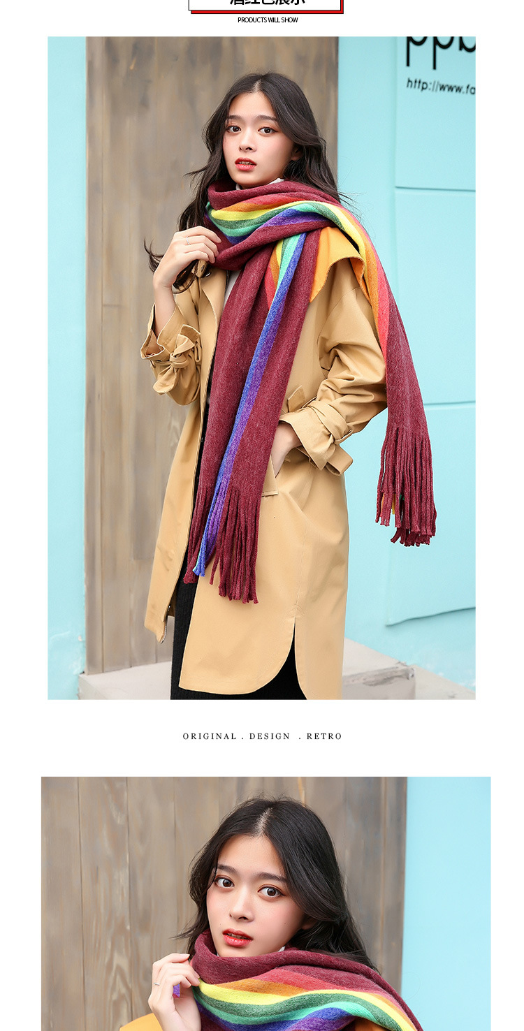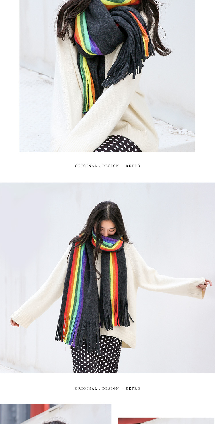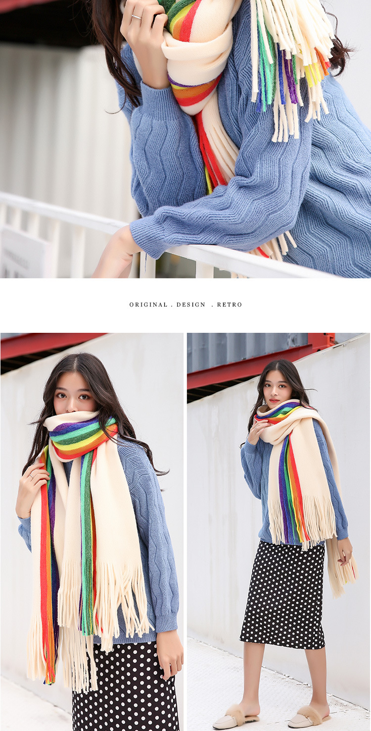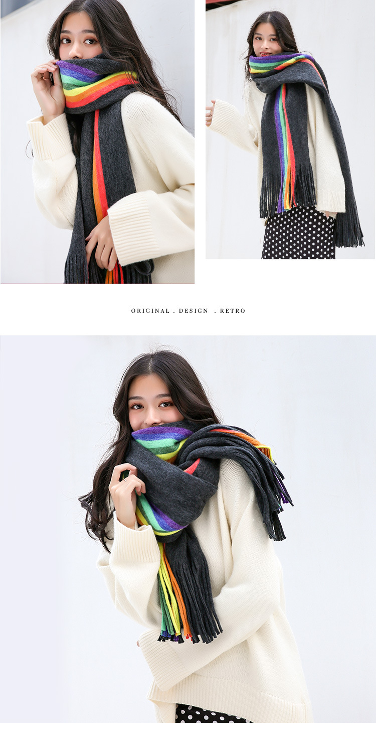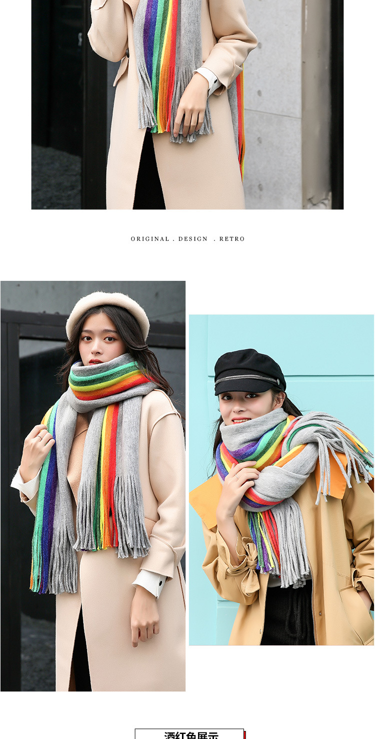 레인보우 스카프 여성용 가을과 겨울 한국 스타일 모든 경기 학생 숄 소녀의 부드러운 소녀의 겨울 두꺼운 따뜻한 목 이중 사용스토어 가기