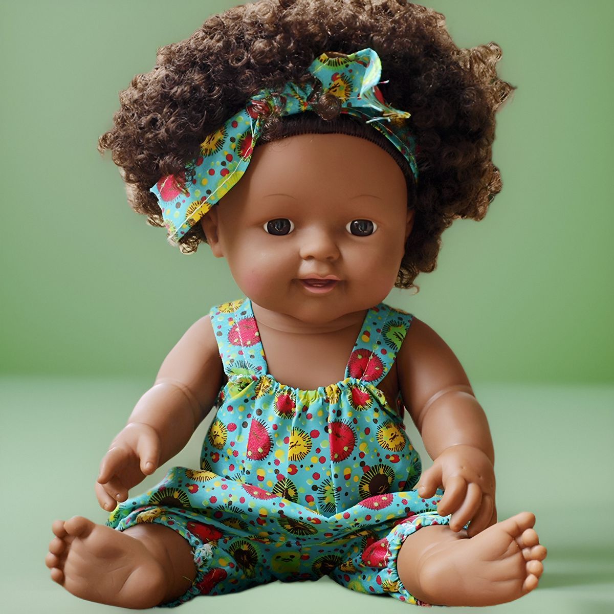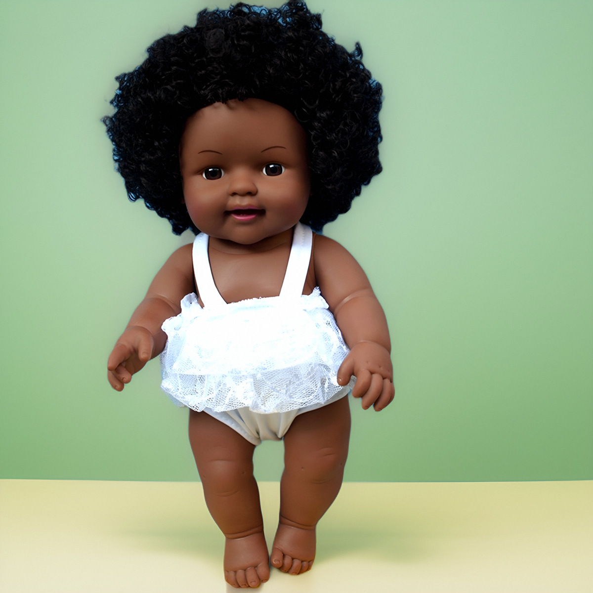 30cm 폭발 머리 아프리카 소녀 검은 피부 시뮬레이션 인형 부드러운 접착제 비닐 인형 장난감 말할 수 있습니다