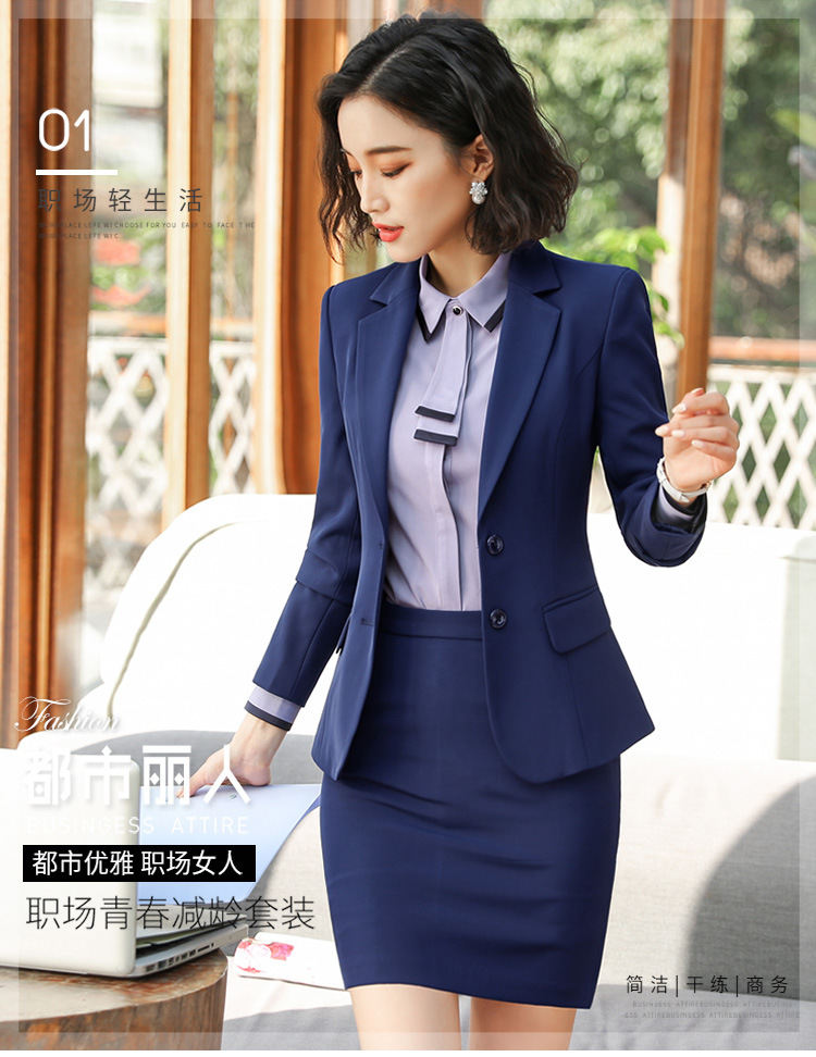 • 남색) 재킷 + 스커트 + 회색 셔츠 134위안