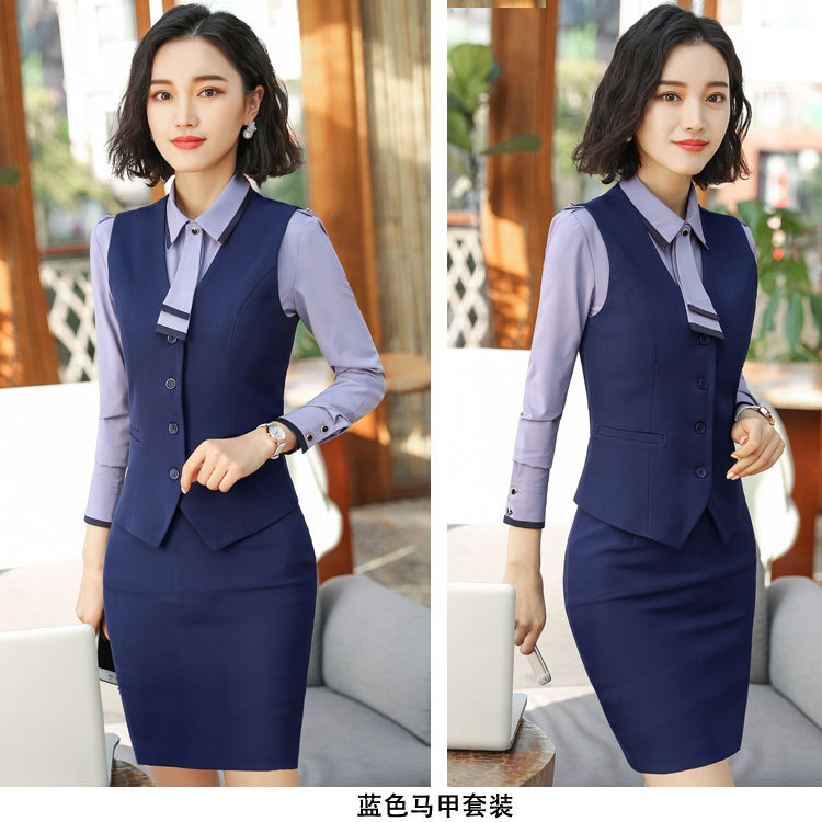 가을 겨울 조끼 세트 세트 여성 세트 4 종 작업복 사무실 작업복 골드 쥬얼리 스토어 비즈니스 착용