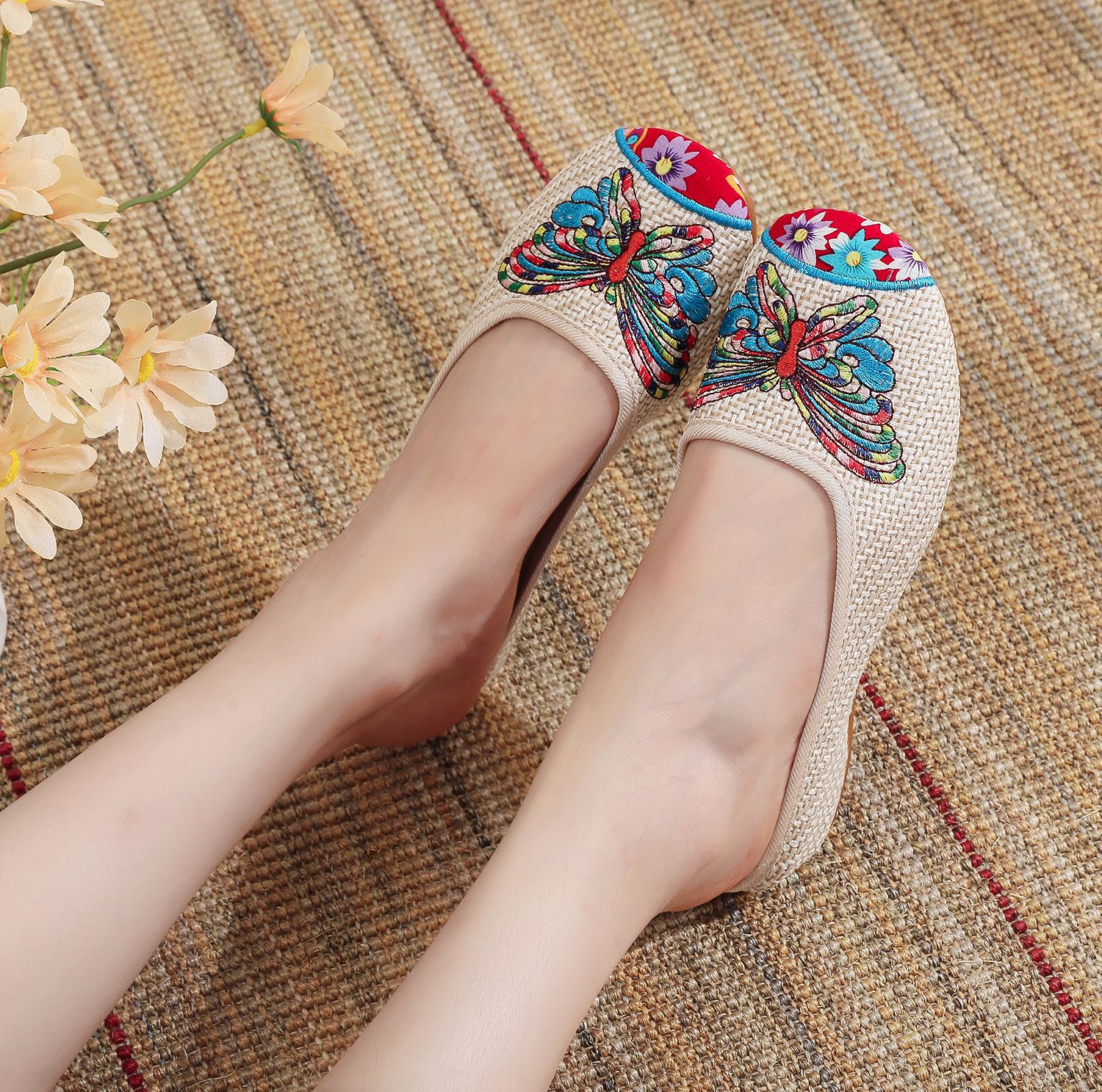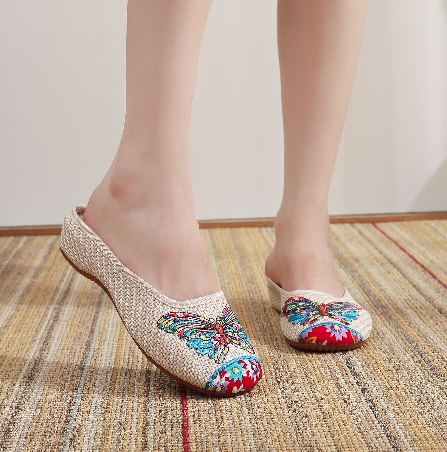 나비 슬리퍼 천 신발 여성 캐주얼 여름 걷기 쇼핑 여행 쇠고기 슬리퍼스토어 가기