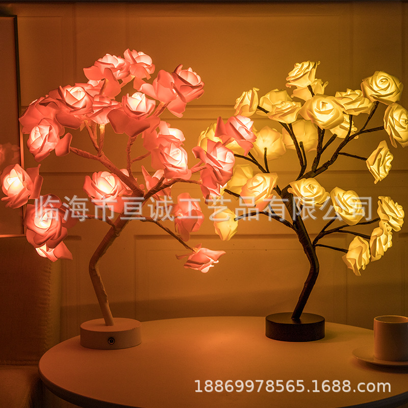 LED 장미 진자 램프 트리 램프 나무 장미 침실 선물 야간 테이블 램프 장식 램프 led 문자열 램프