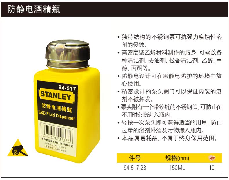 스탠리 먼지없는 손목 스트랩 2m 알코올 보틀 중소형 U 펜형 전동 브러시 66-011/012/13
