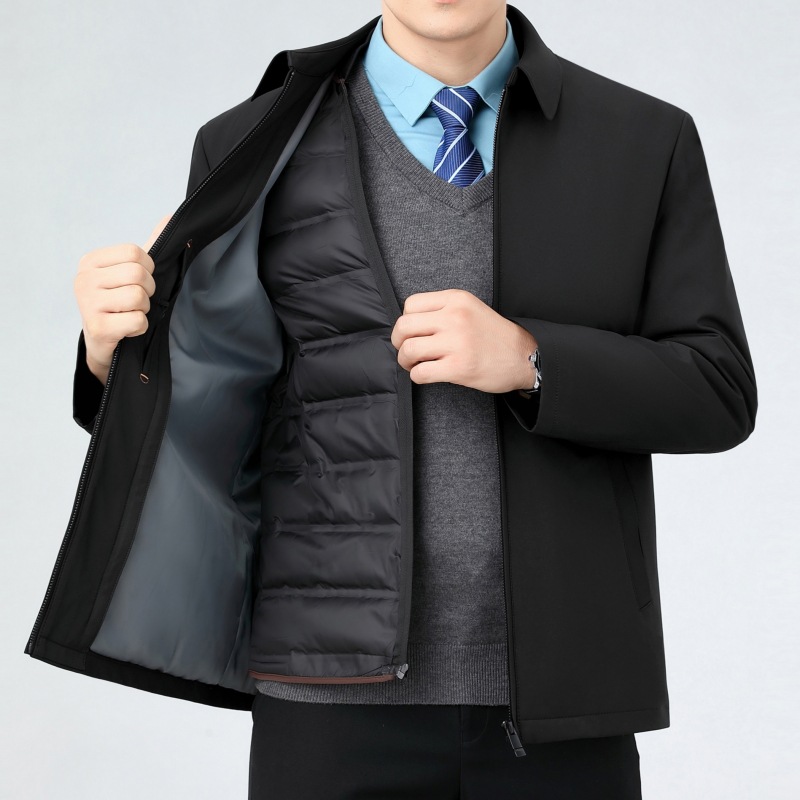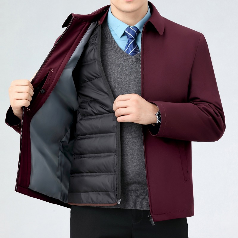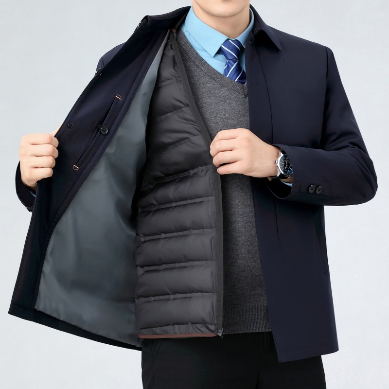 겨울 중년 및 노인 두꺼운 다운 재킷 남성용 이동식 오리 다운 라이너 재킷 아빠 비즈니스 방한 겨울 자켓