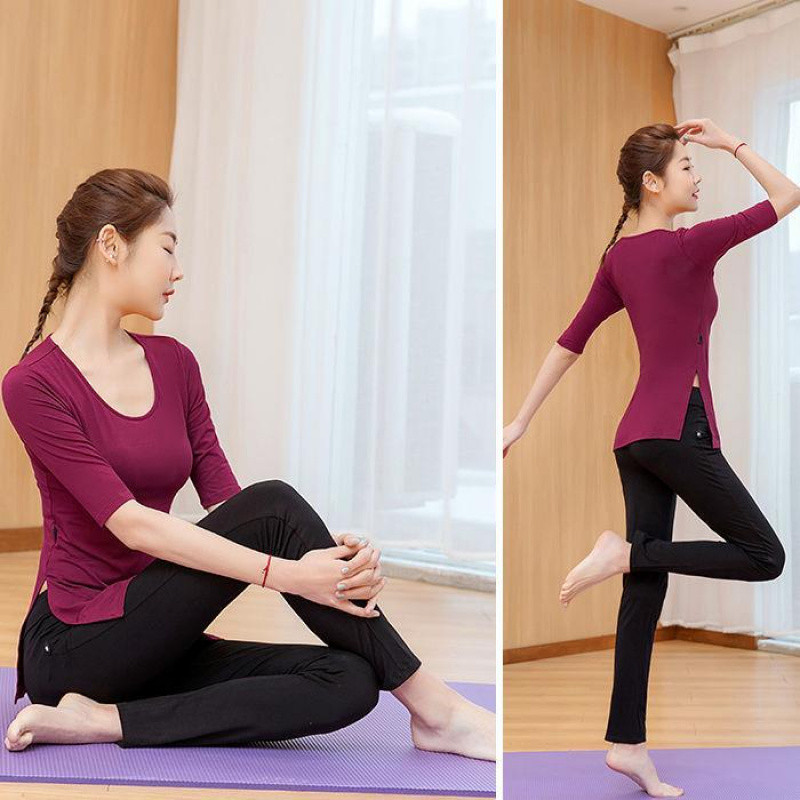 한국식 스플릿 요가 의류 세트 여성 요가 피트니스 의류 플러스 사이즈 슬리밍 스포츠웨어 모달