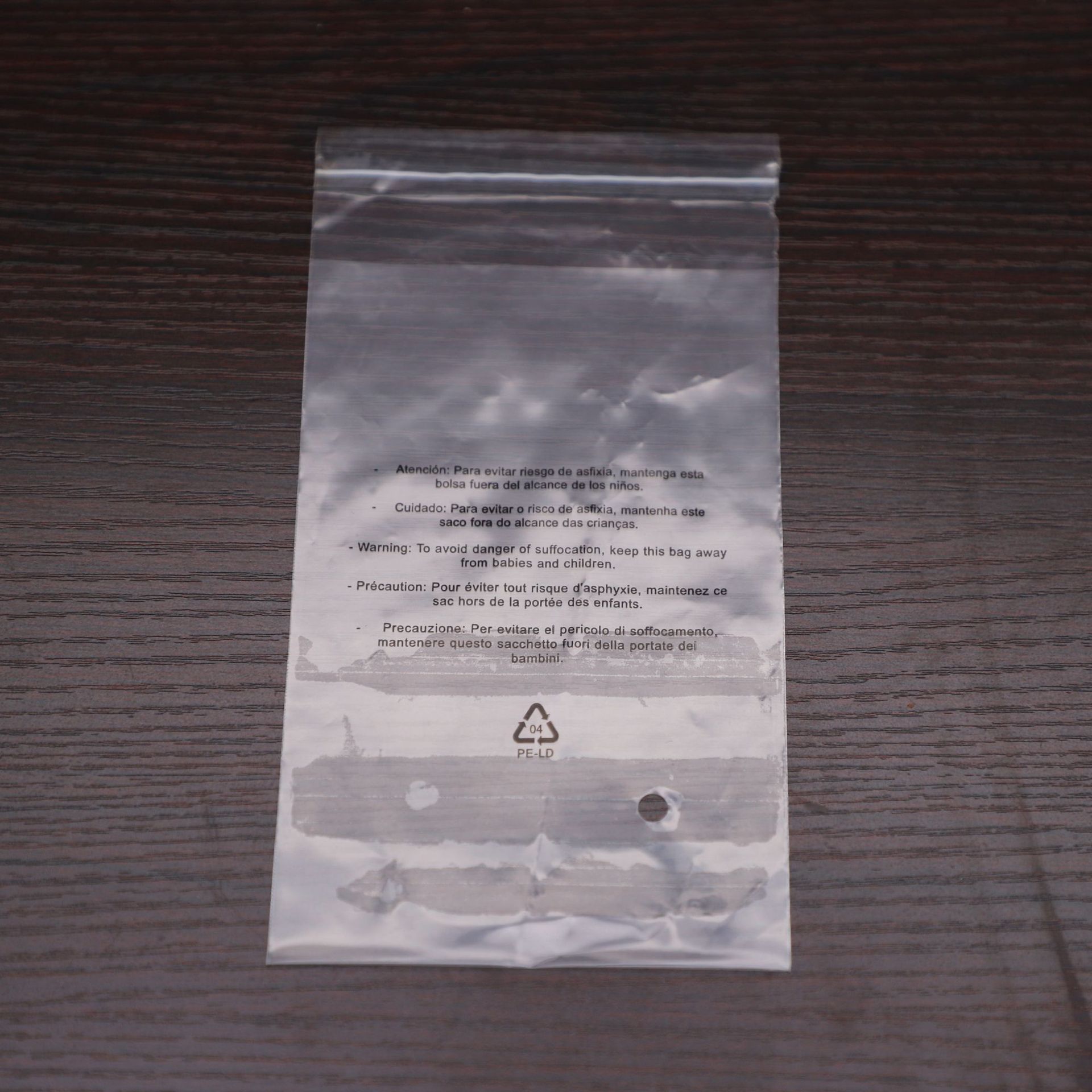 도매 아마존 해외 무역 다국어 인쇄 질식 방지 천공 비닐봉투, 투명 아동복 봉투 재고 있음스토어 가기