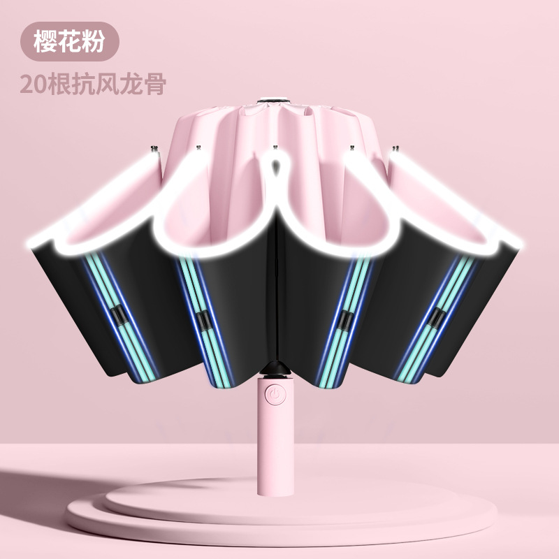 • [업그레이드 리버스] 라이트 핑크-20 뼈 폭풍 저항 + 젖지 않은 우산