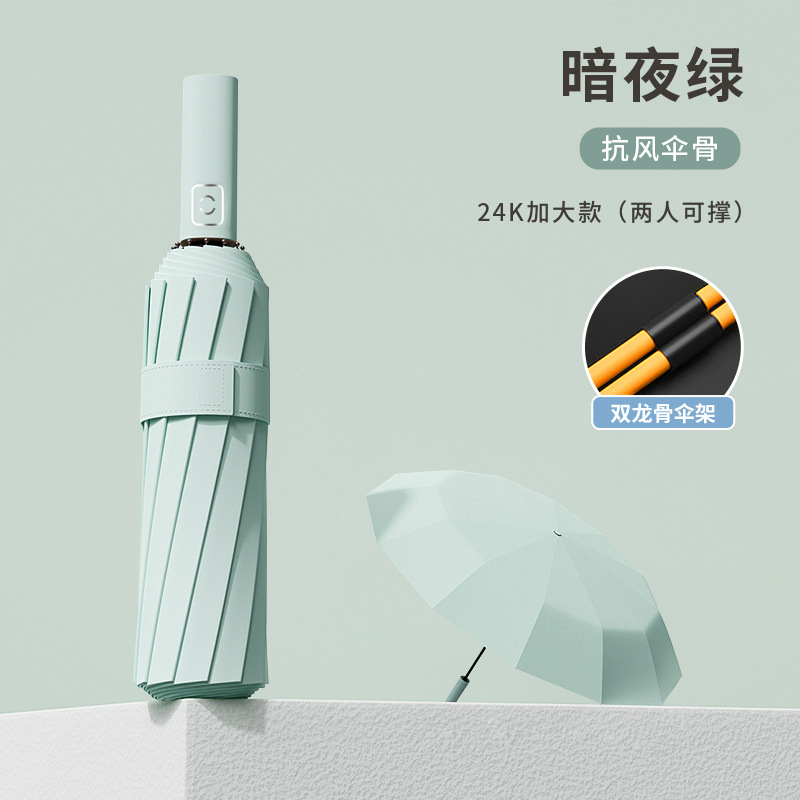 • [업그레이드 및 강화 모델] 다크 나이트 그린 - 우산 24 리브 대형 우산 + 두꺼워지고 확대됨