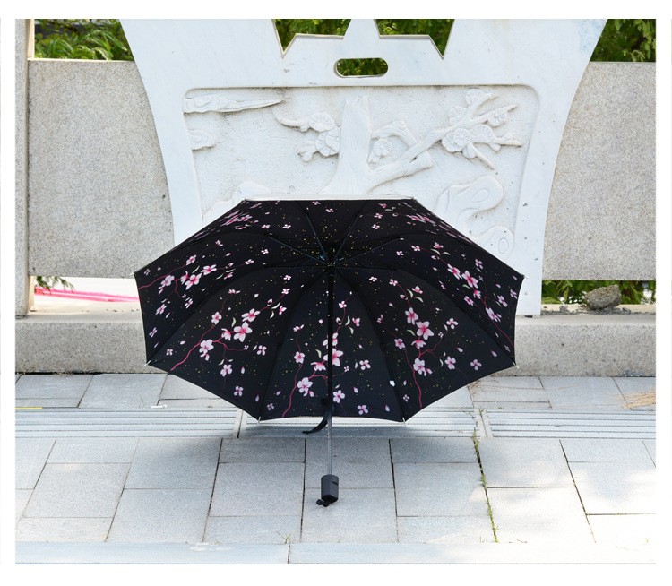 새로운 창조적 인 작은 검정 우산 검정 고무 3 배 선 스크린 우산 3 개 접는 우산 도매 인쇄 광고 우산 로고스토어 가기