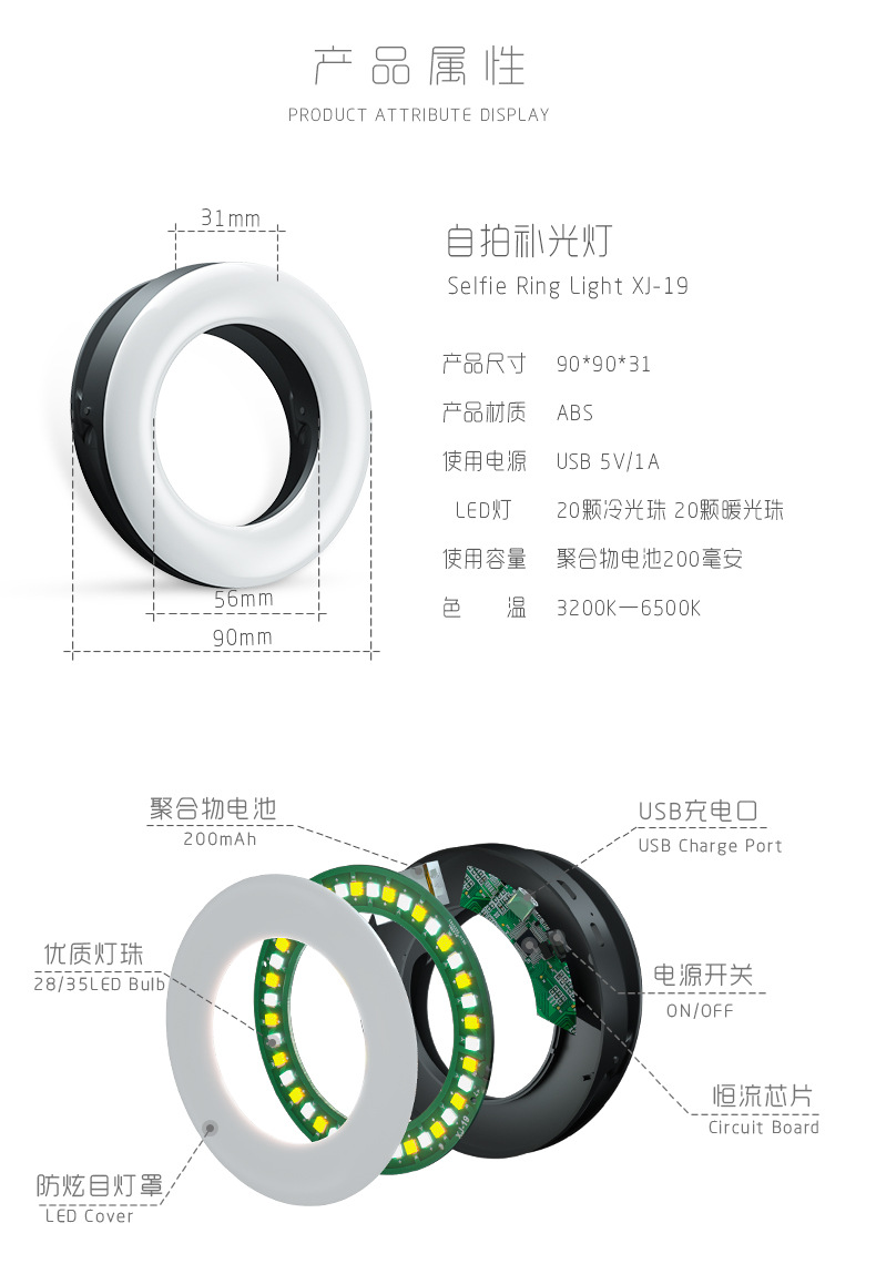 휴대 전화 필 라이트 LED 라이브 필 라이트 셀프 타이머 라이트 아티팩트 휴대용 뷰티 라운드 링 라이트 앵커 사진 라이트