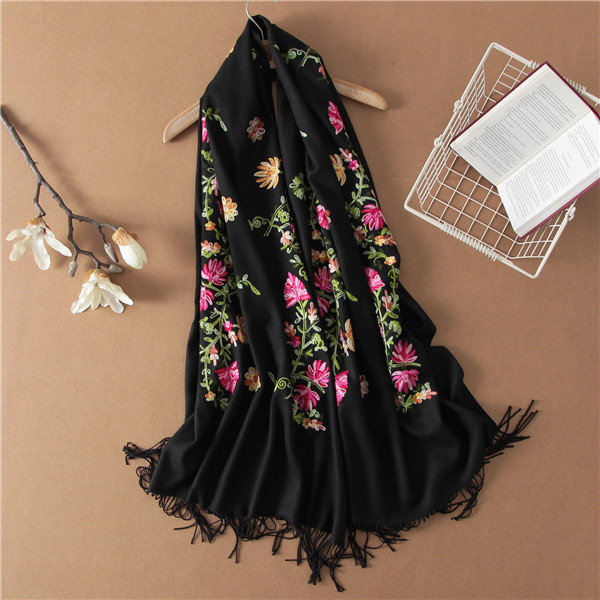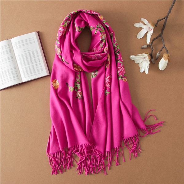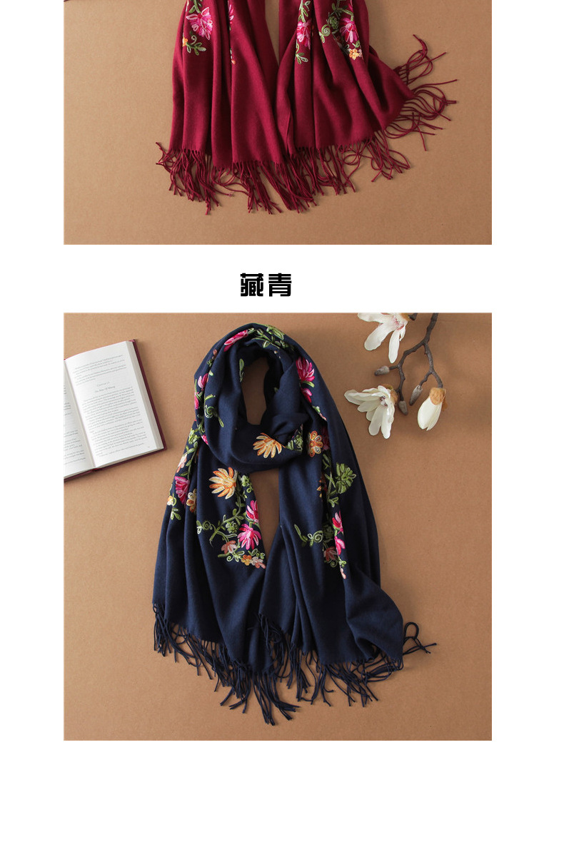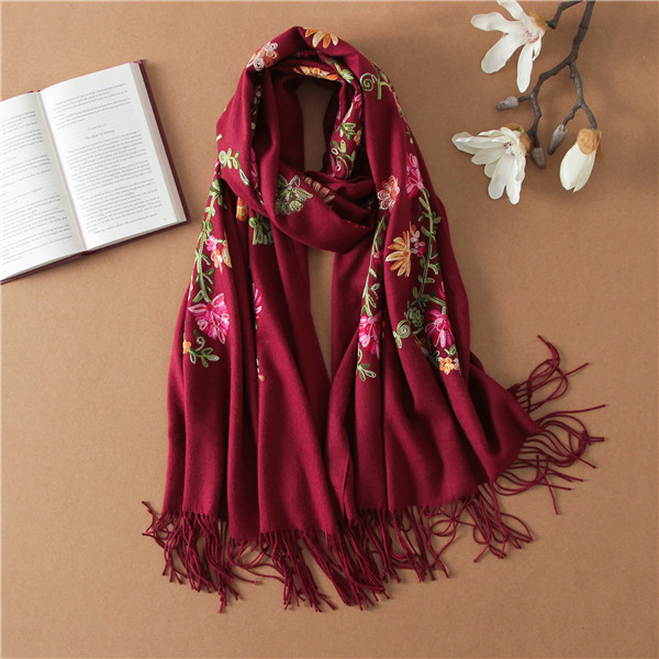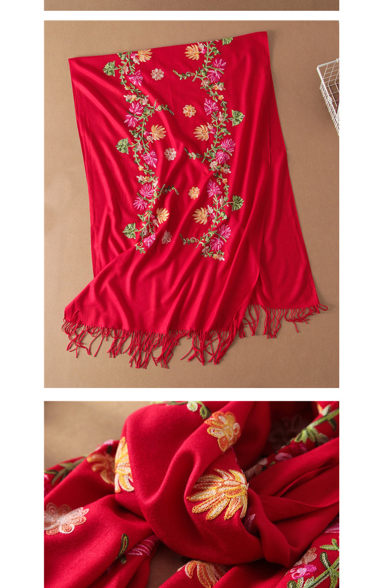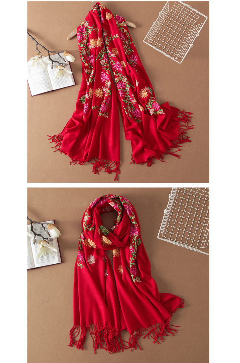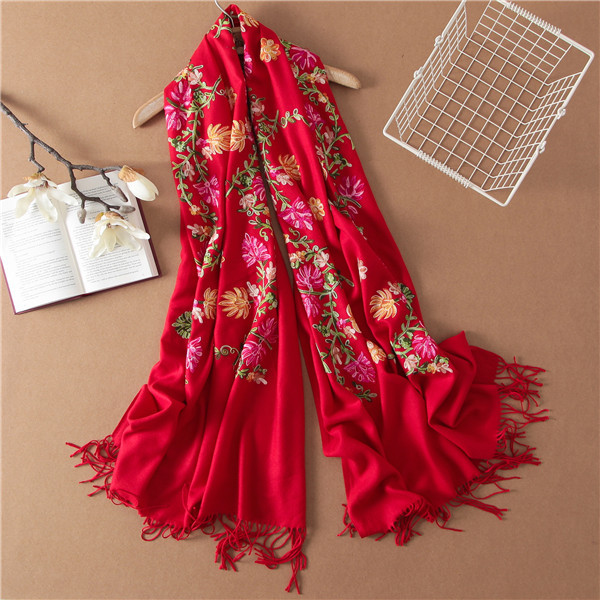 네팔 절묘한 수제 자수 꽃 레드 웨딩 캐시미어 울 숄 중국 스타일 이중 사용 스카프스토어 가기