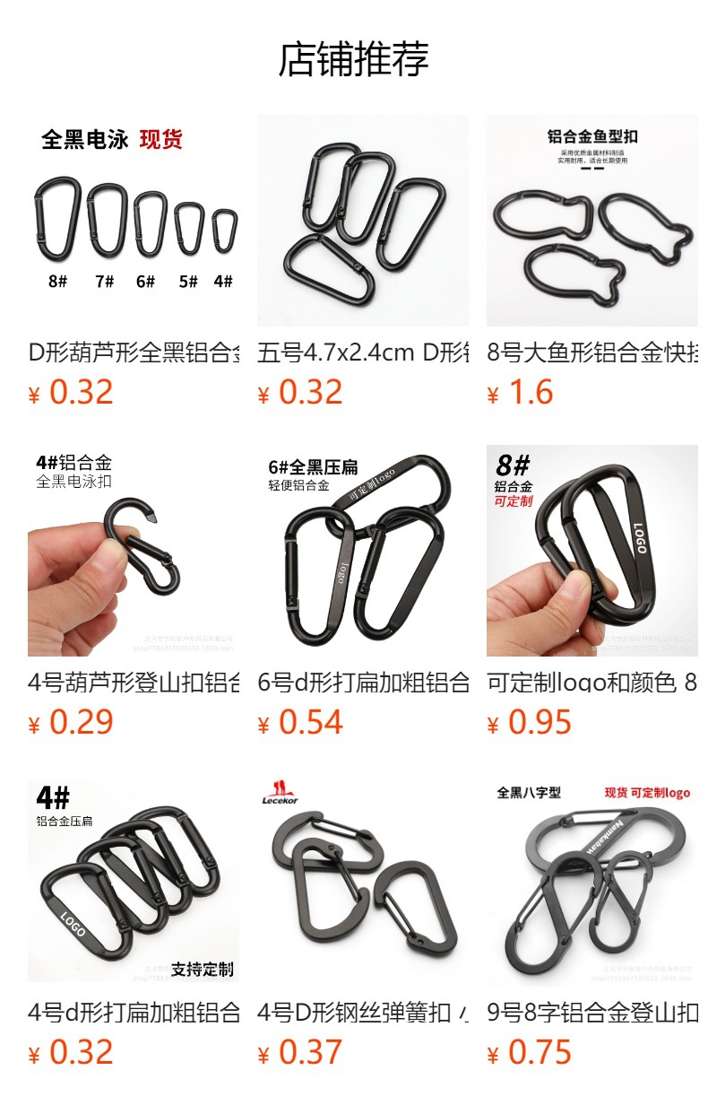 5호 5cm 4.0mm 두께의 호리병 모양 순수 검정색 퀵훅 키홀더 이어폰 케이스 걸이용 등산용 버클 금속 버클 배낭용스토어 가기