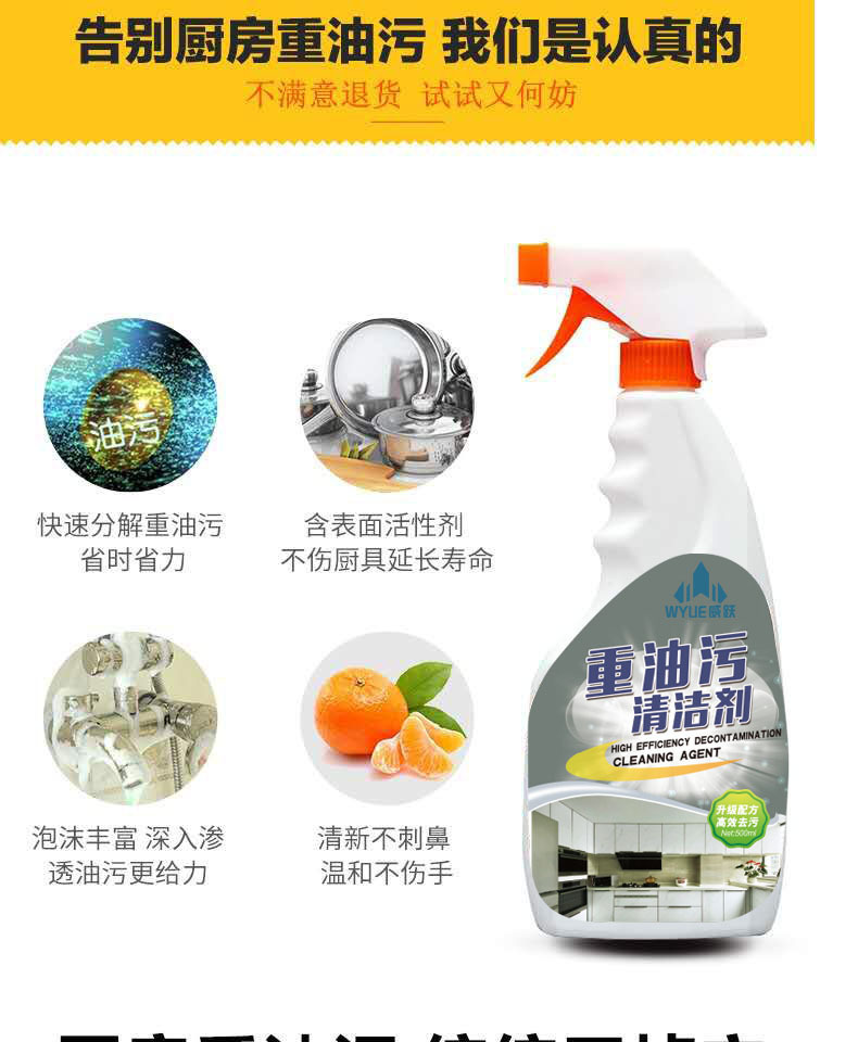 공장 직공급 Weiyue 브랜드 키친 오일 클리너 렌지 후드 세척제 다기능 오일 클리너