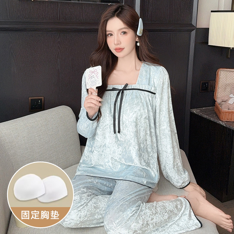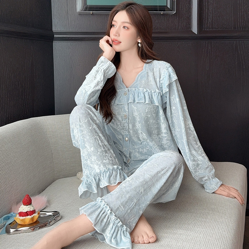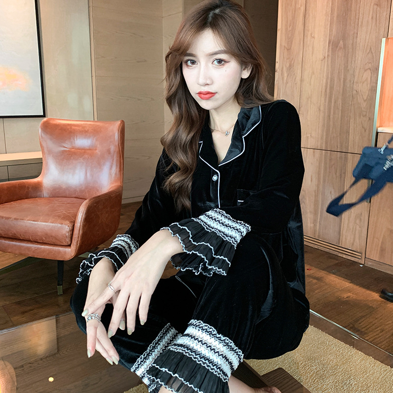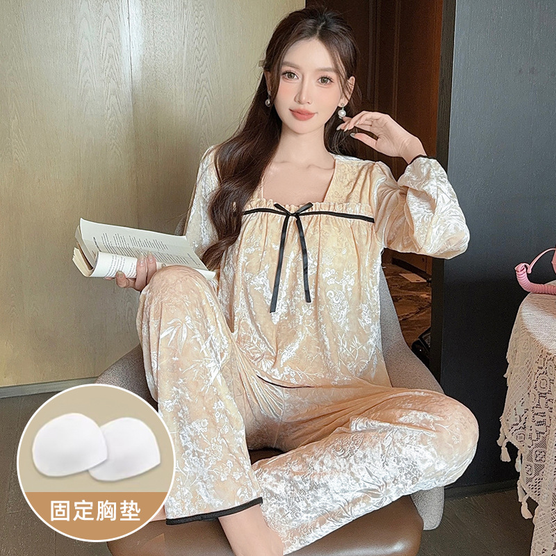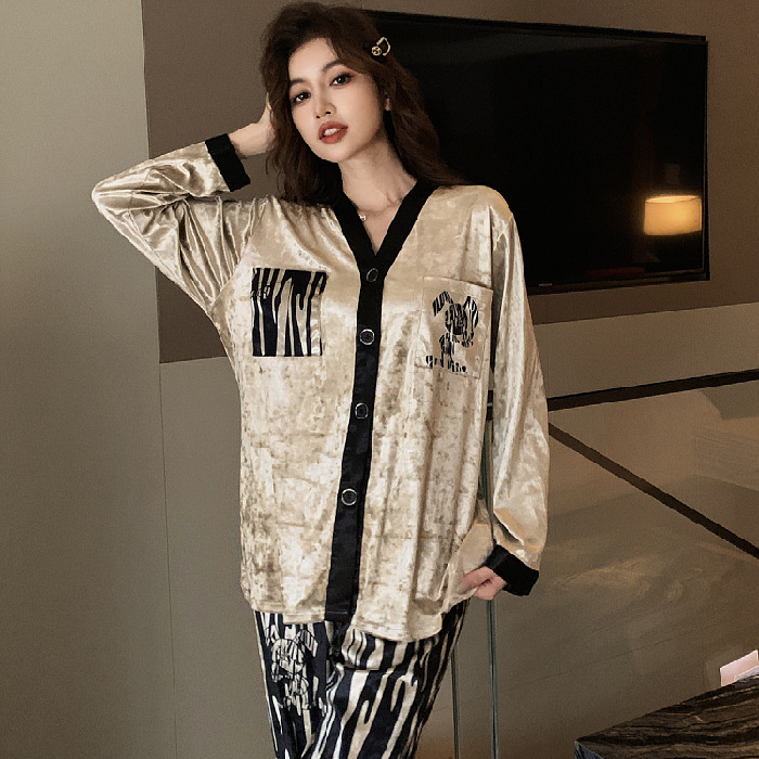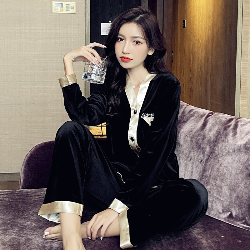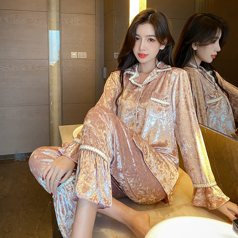 商品详情图_【瑶帝雅】秋冬季新款金丝绒长袖套装睡衣女奢华家居