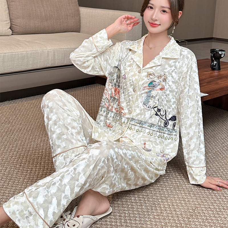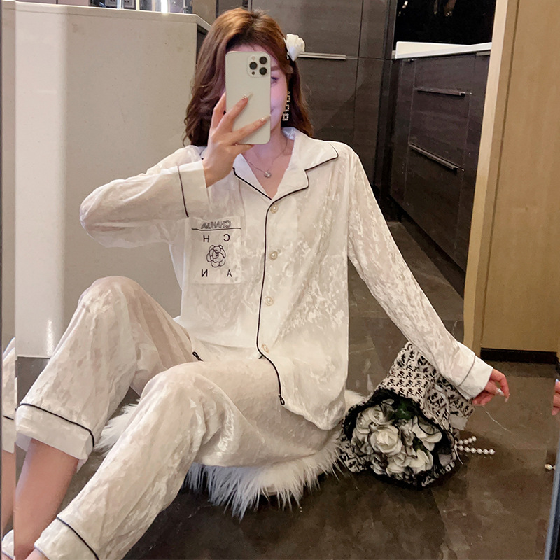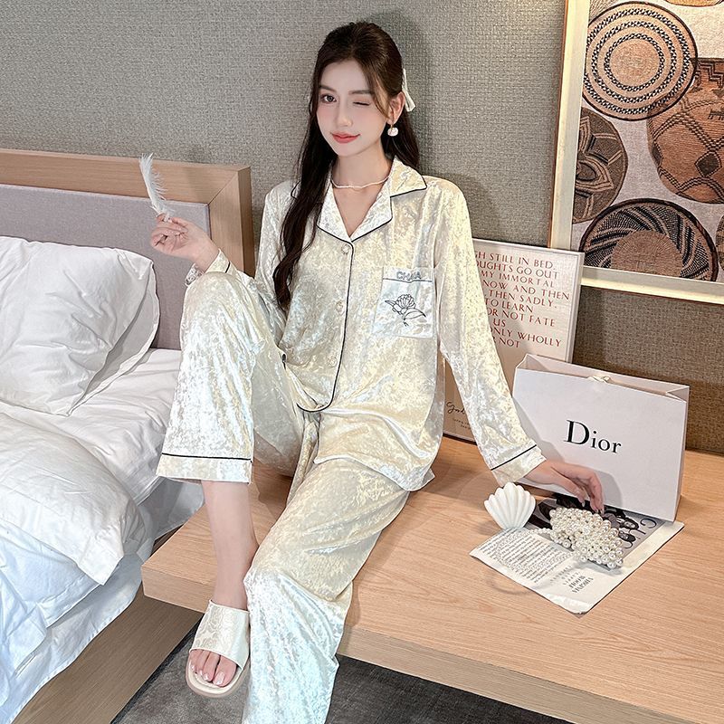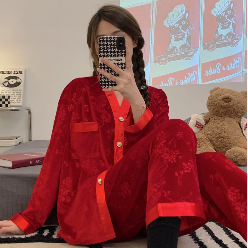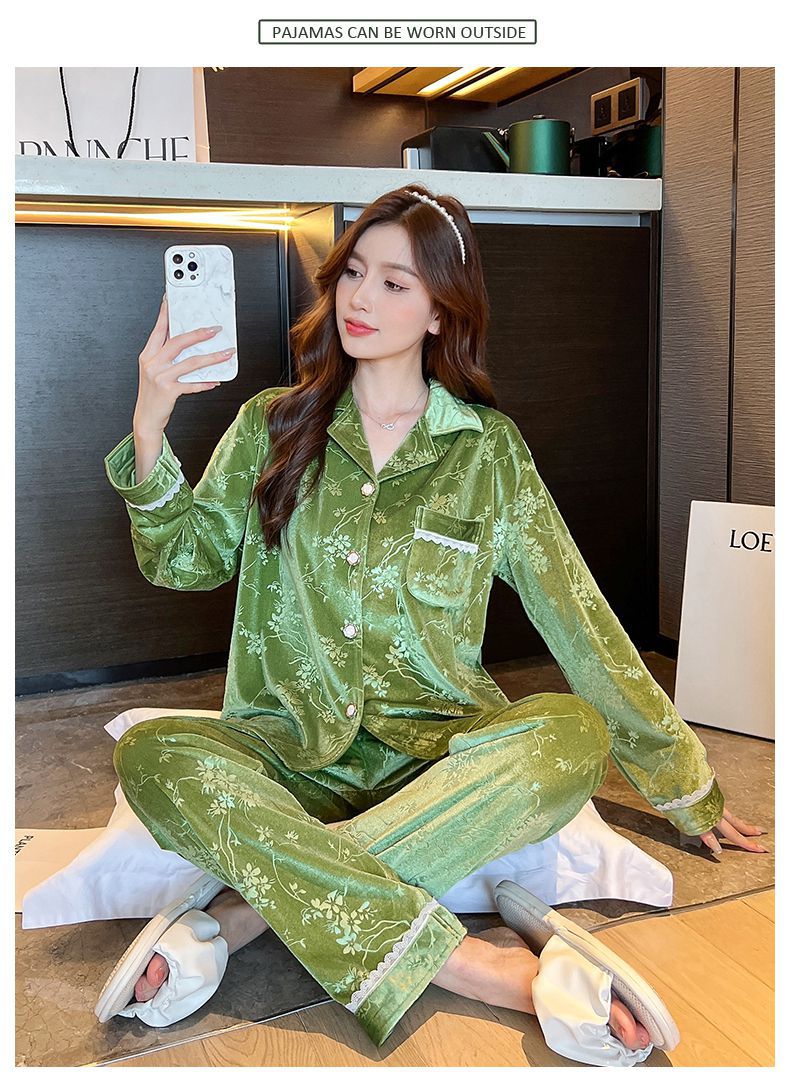 商品详情图_【瑶帝雅】秋冬季新款金丝绒长袖套装山茶花睡衣女奢