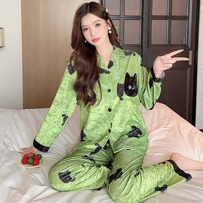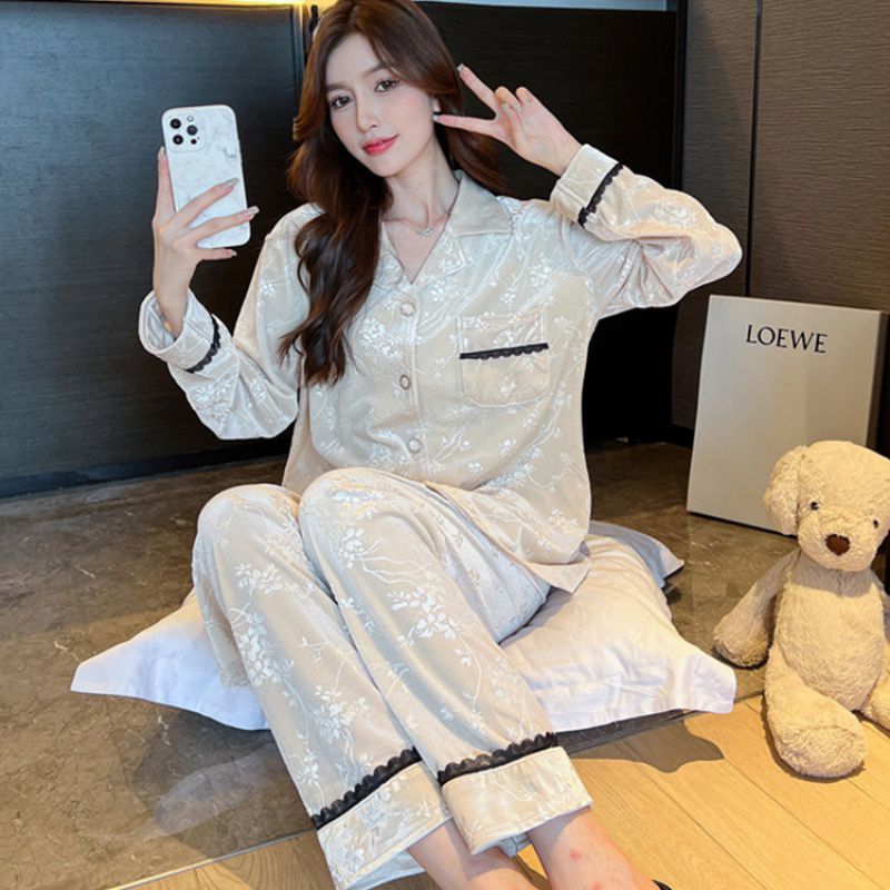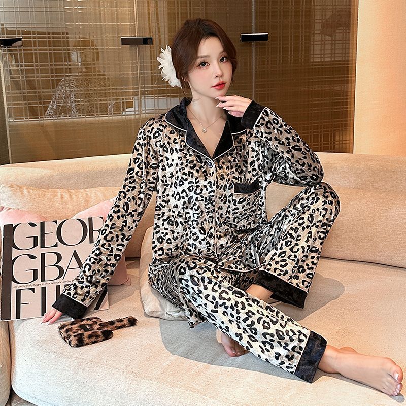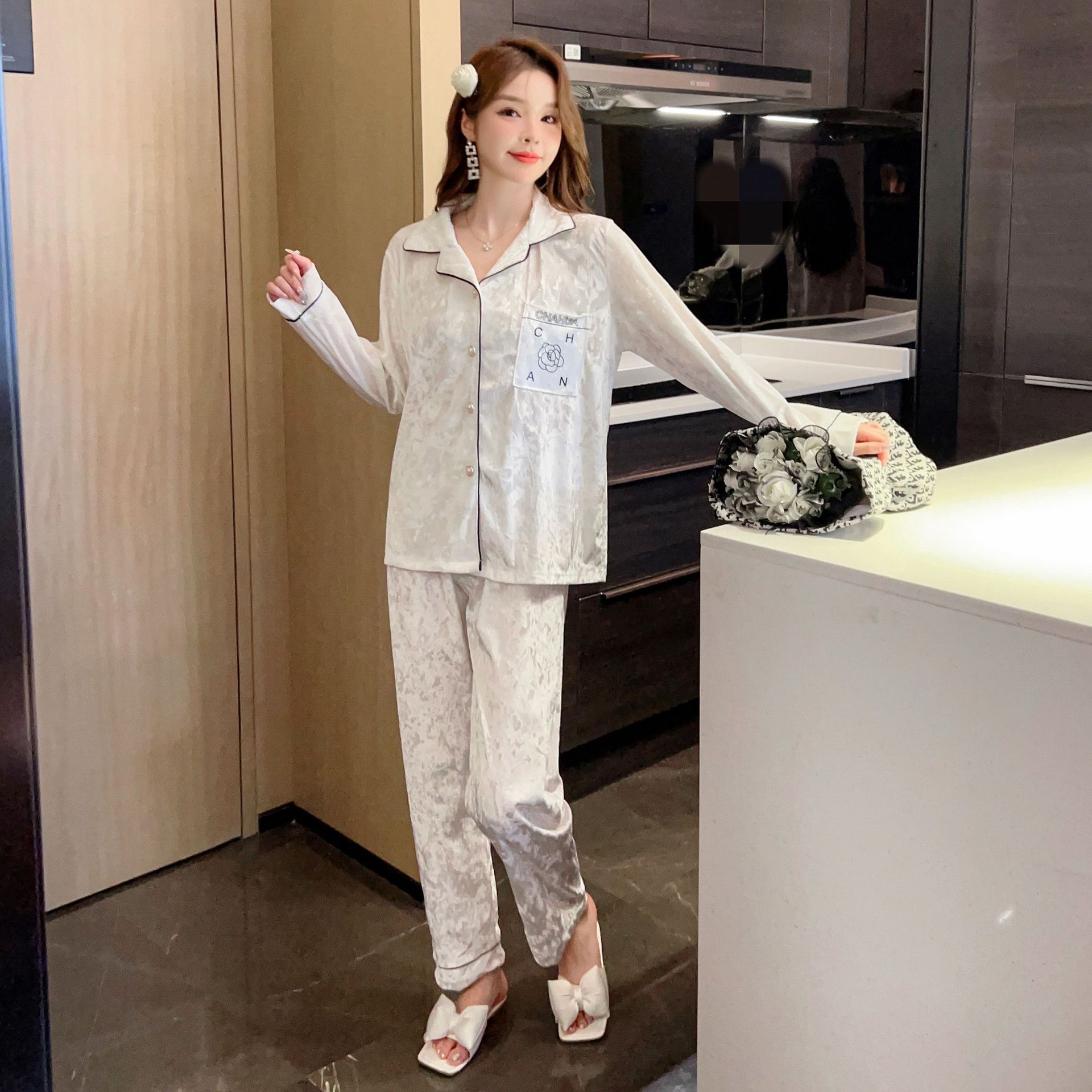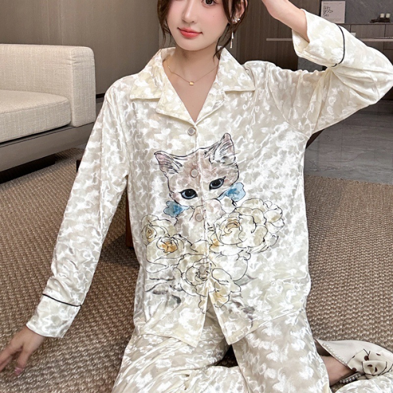 商品详情图_【瑶帝雅】秋冬季新款金丝绒长袖套装山茶花睡衣女奢
