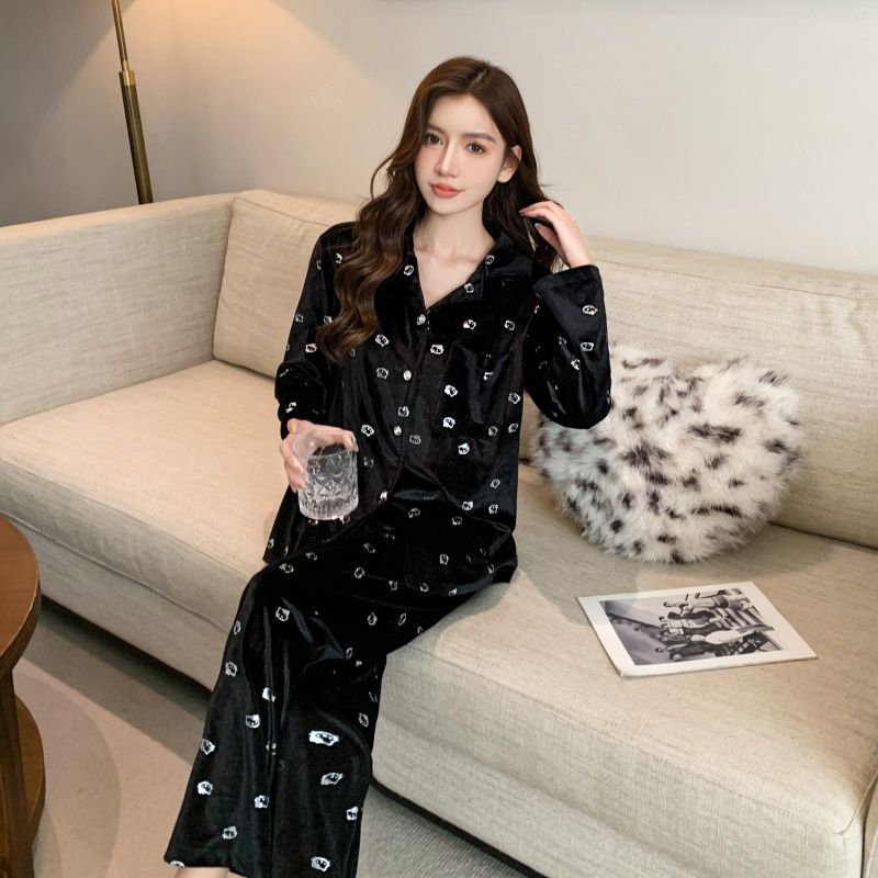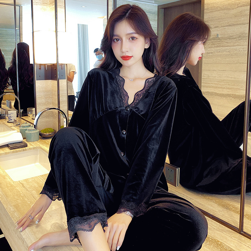商品详情图_秋冬新款情侣睡衣女金丝绒甜美女士黑色款休闲男士家