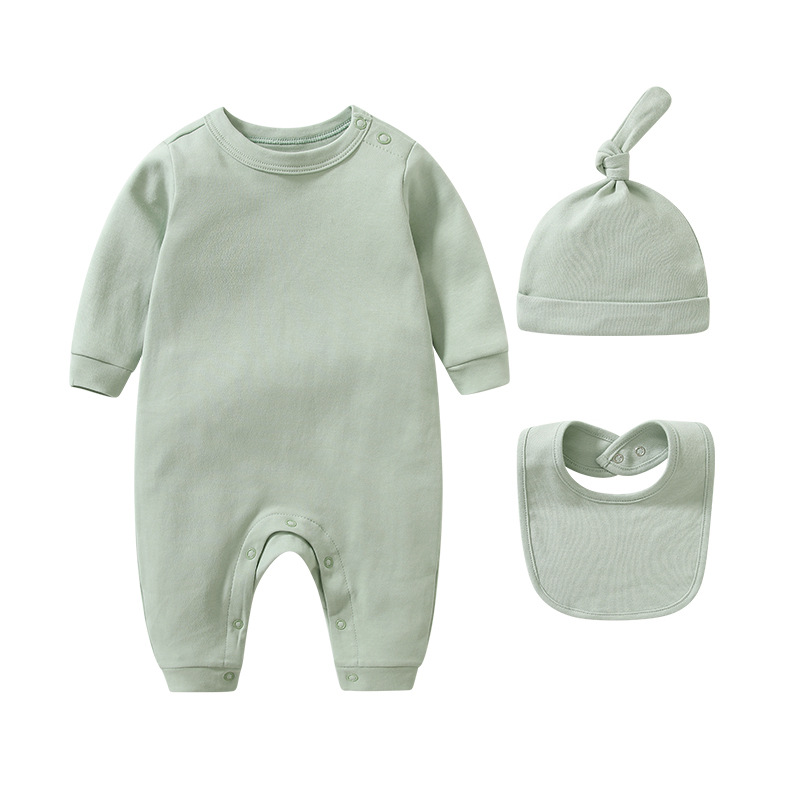 신생아 아기 단색 면 어깨 버클 긴 소매 등산 점프 슈트 액세서리 조합 세트