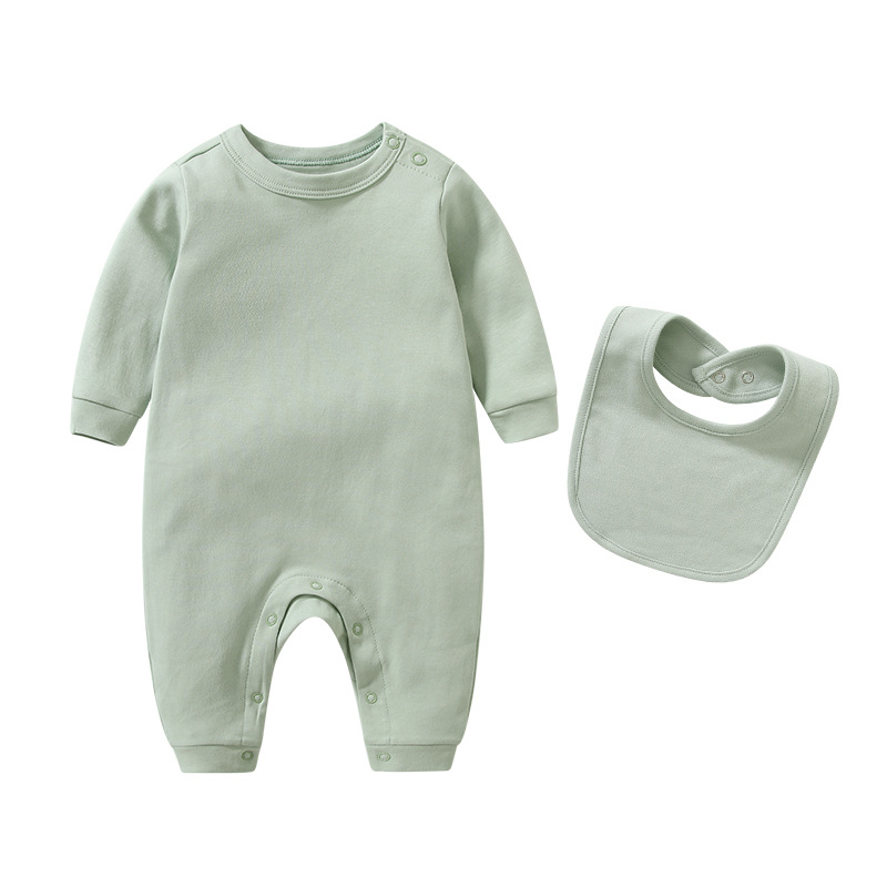 신생아 아기 단색 면 어깨 버클 긴 소매 등산 점프 슈트 액세서리 조합 세트스토어 가기