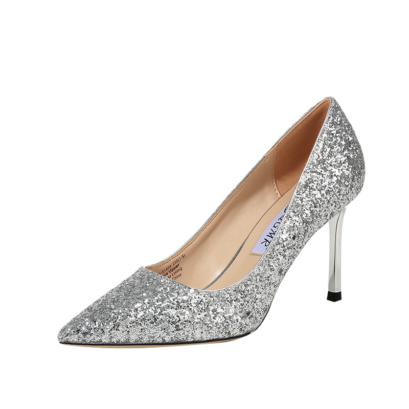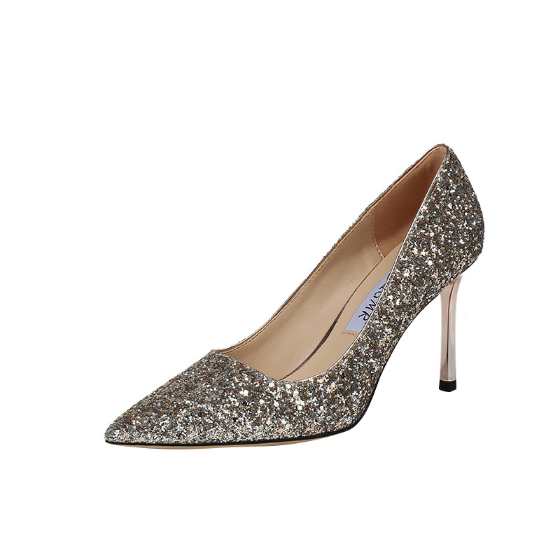 도매 신부 들러리 크리스탈 슈즈 2023 봄 여름 신상품 뾰족코 스팽글 신부 얇은 굽 하이힐 여성용 트렌디스토어 가기