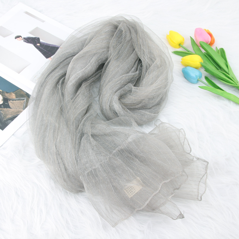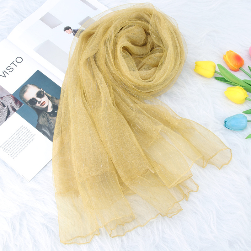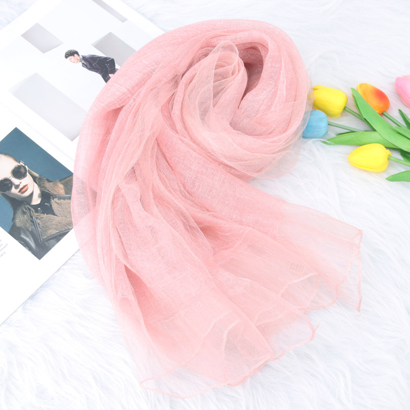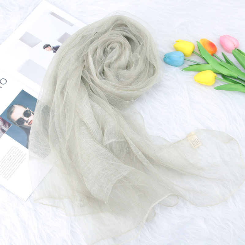 가을과 겨울 새로운 더블 레이어 실크 린넨 스카프 가을과 겨울 예술적 모든 매치 플래시 실크 따뜻한 숄 스카프 이중 사용 여성스토어 가기