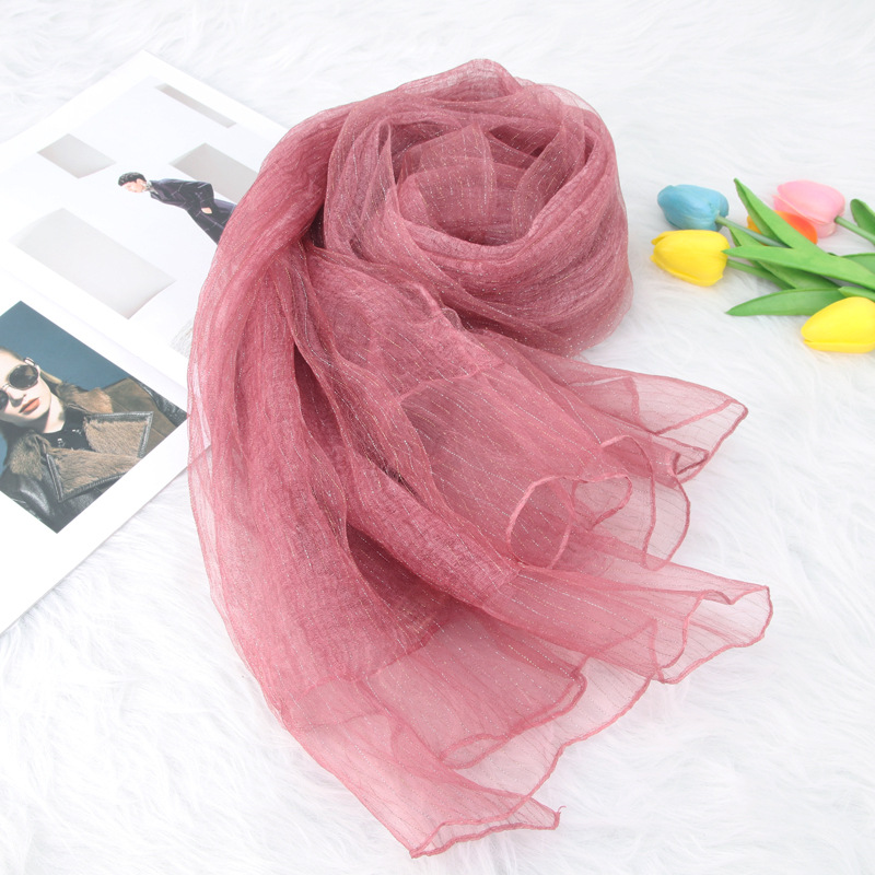 가을과 겨울 새로운 더블 레이어 실크 린넨 스카프 가을과 겨울 예술적 모든 매치 플래시 실크 따뜻한 숄 스카프 이중 사용 여성