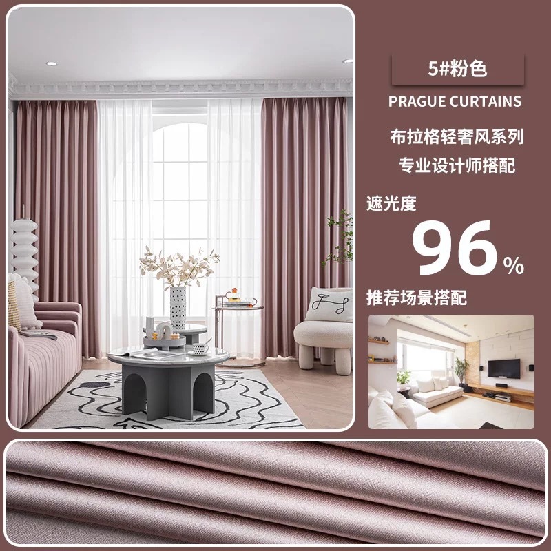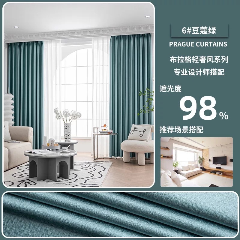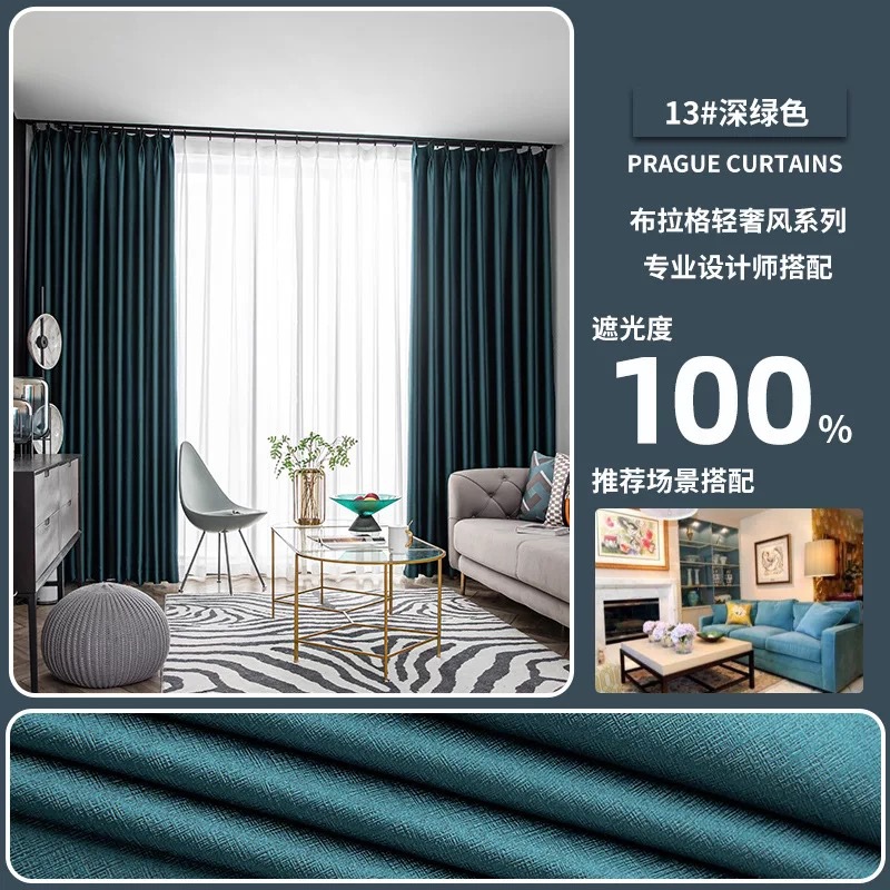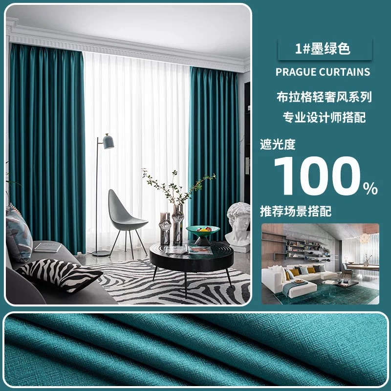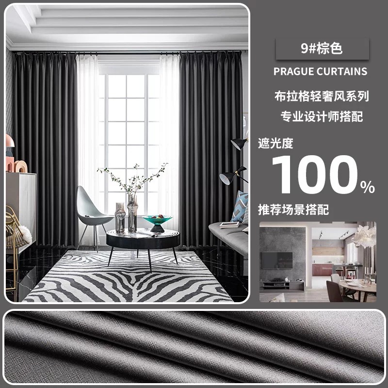새로운 두꺼운 블랙 실크 음영 고정밀 커튼 패브릭 선 스크린 단열 스티칭 거실 침실 파티션 완성 된 커튼