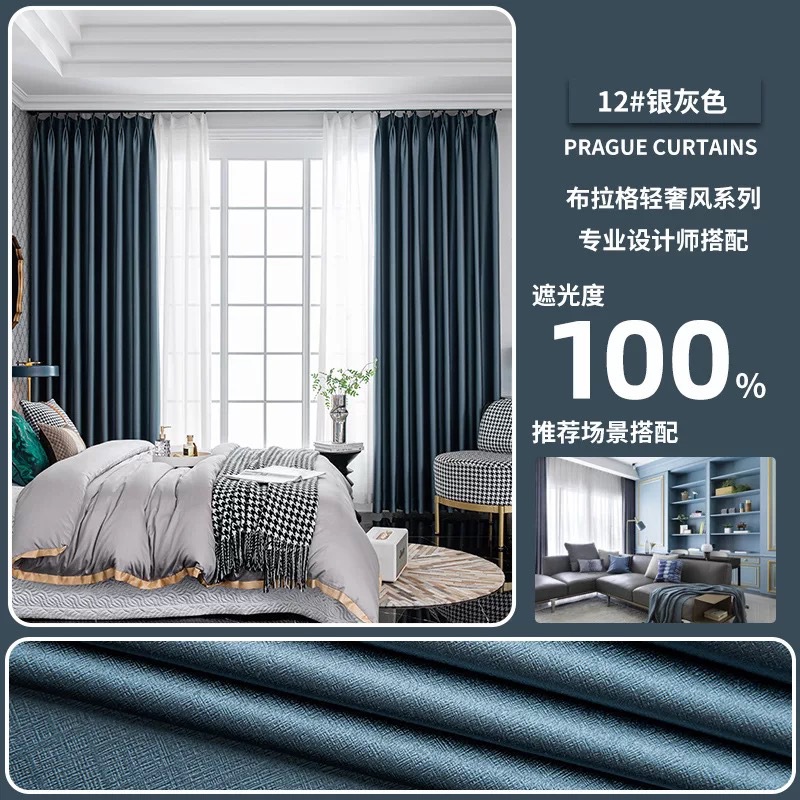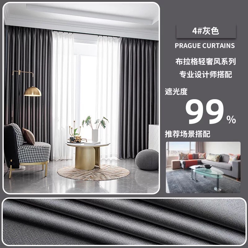 새로운 두꺼운 블랙 실크 음영 고정밀 커튼 패브릭 선 스크린 단열 스티칭 거실 침실 파티션 완성 된 커튼스토어 가기