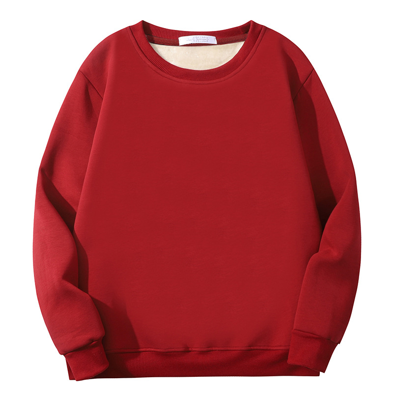 가을과 겨울 무거운 무게 단색 남성과 여성의 라운드 넥 스웨터 두꺼운 기모 크로스 보더 남성 스웨터 느슨한 양가죽 스웨터 재킷스토어 가기