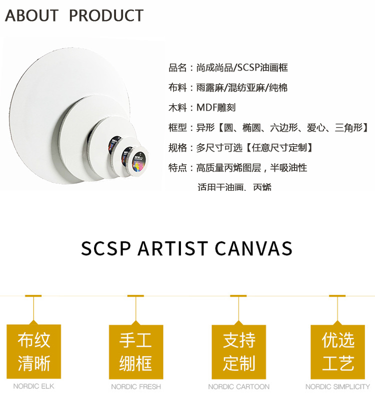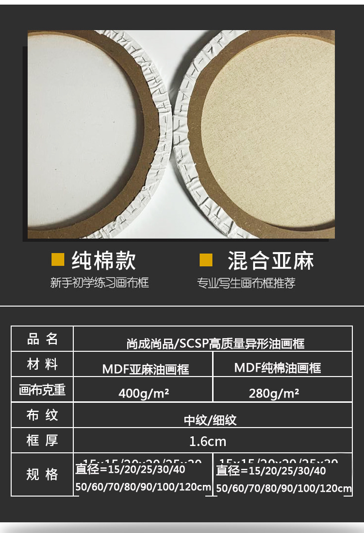공장 도매 라운드 유화 프레임 캔버스 30*40cm 모양의 밀도 보드 그림 프레임 캔버스 라운드 유화 프레임스토어 가기