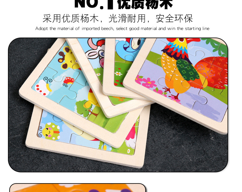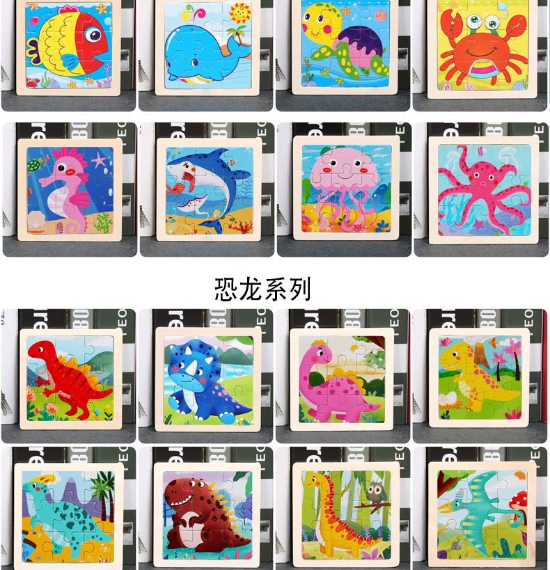 나무 3-7 세 9 조각 나무 퍼즐 어린이 동물 퍼즐 조기 교육 만화 평면 퍼즐 장난감스토어 가기