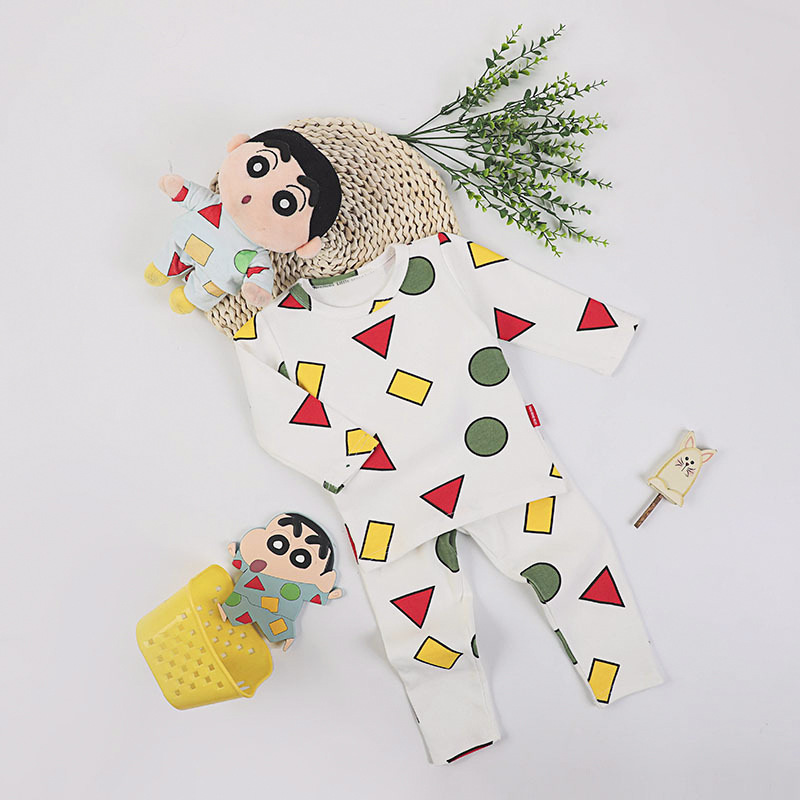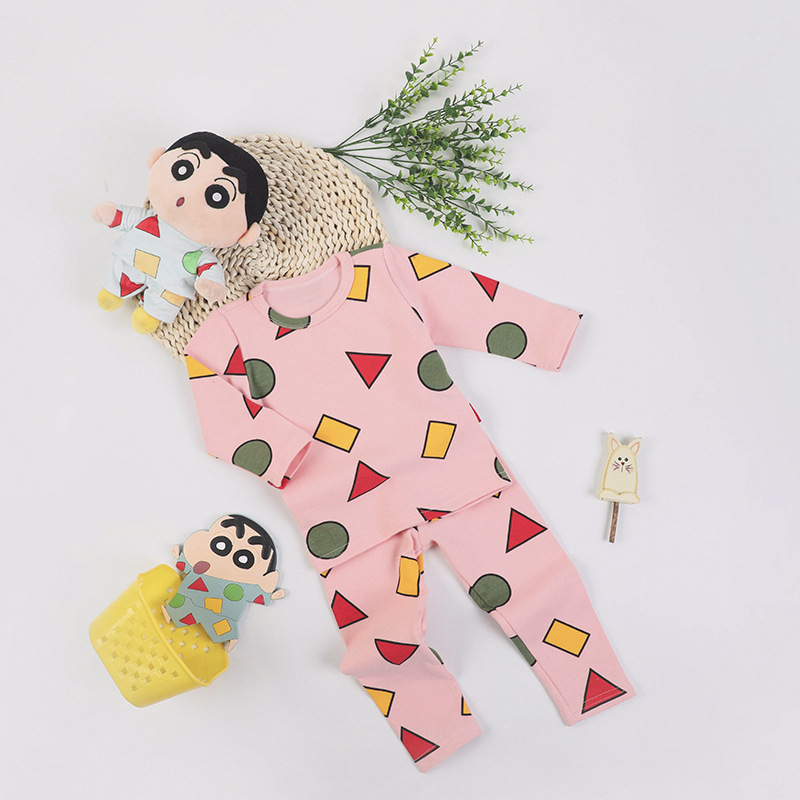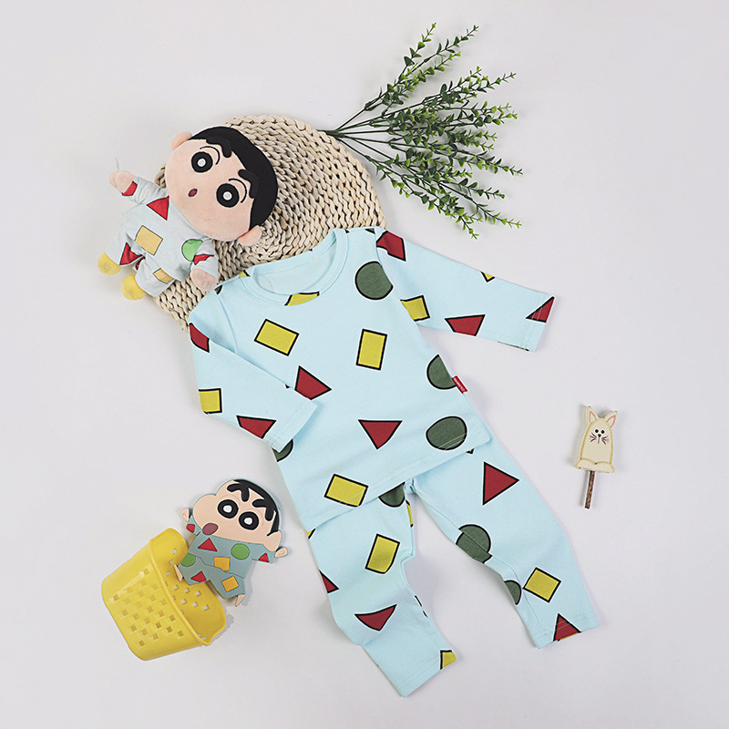 어린이, 남아, 여아용 크레용신짱 같은 스타일의 잠옷, 가을 겨울 보온 속옷, 긴팔 가정복 세트, 부모-자식 의류스토어 가기