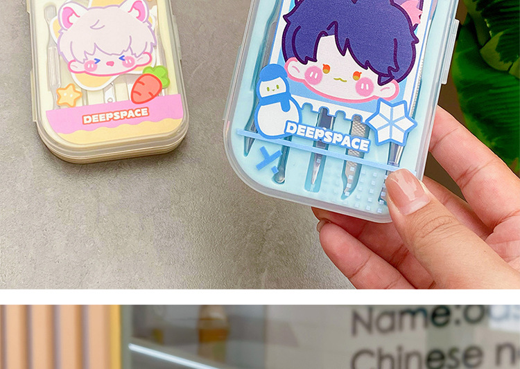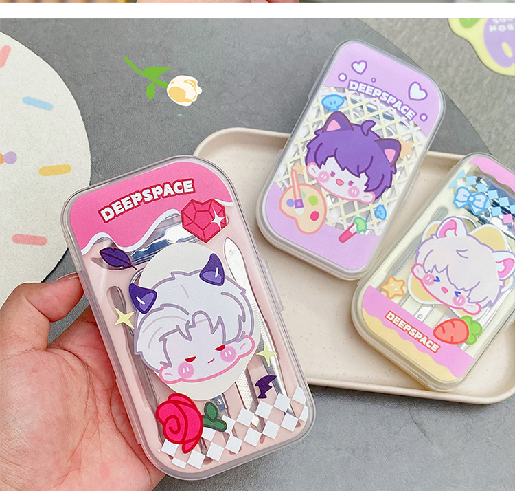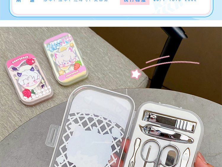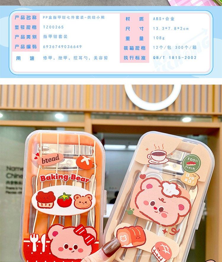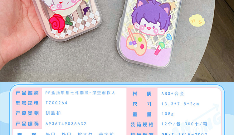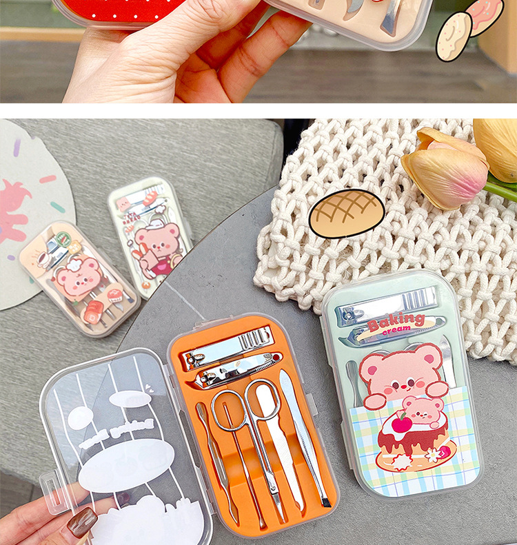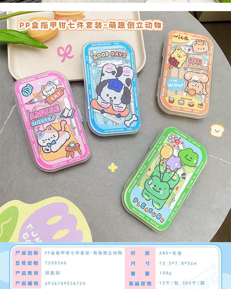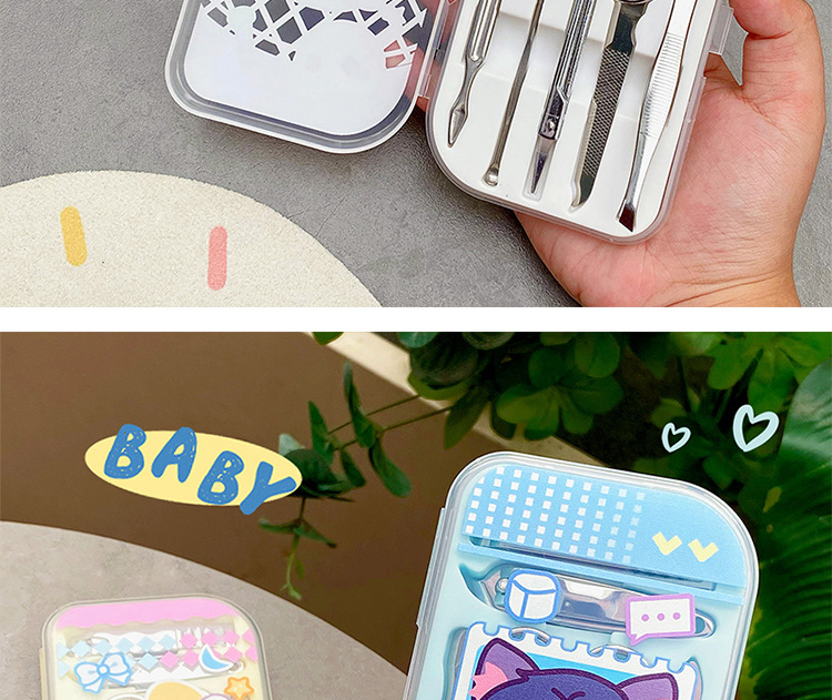 새로운 만화 네일 아트 세트 PP 박스 네일 아트 스테인리스 7종 세트 귀여운 손톱깎이 세트 소녀용