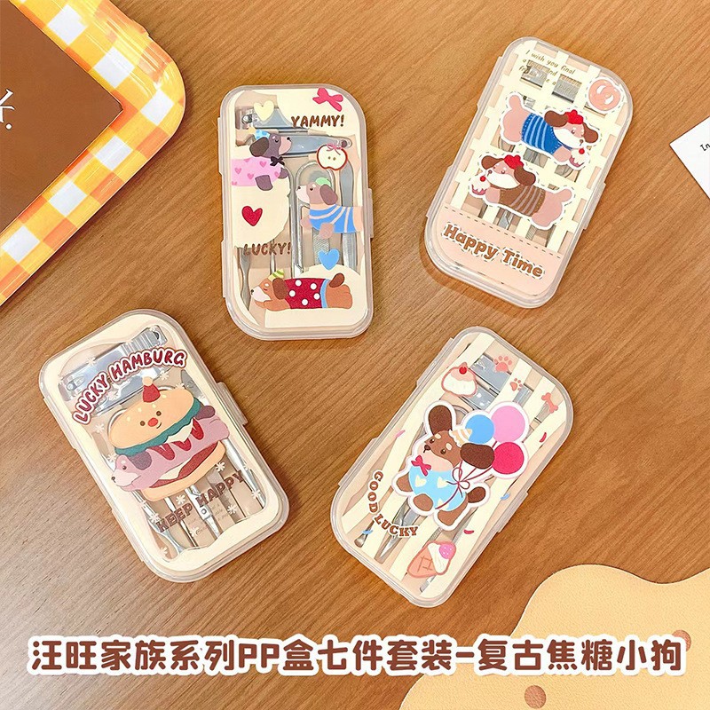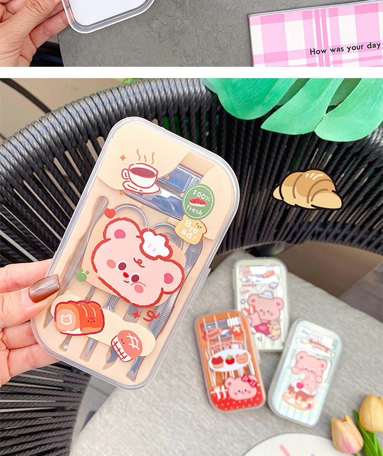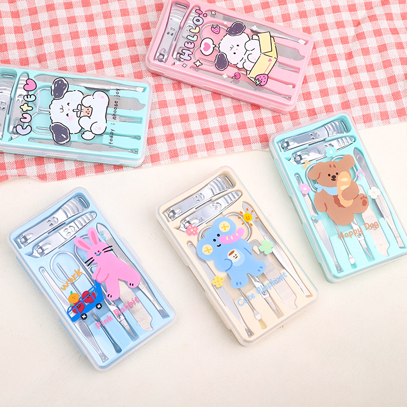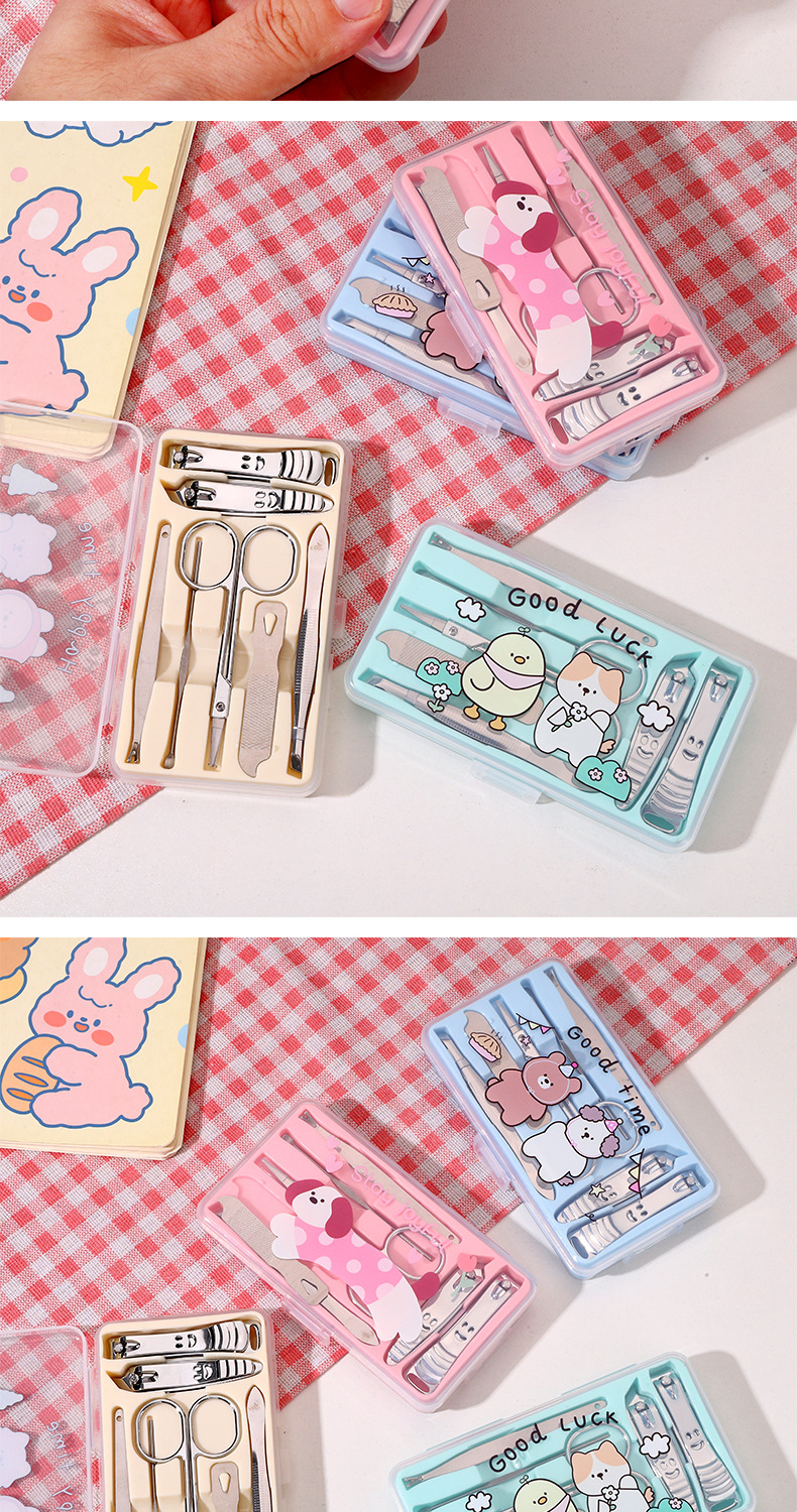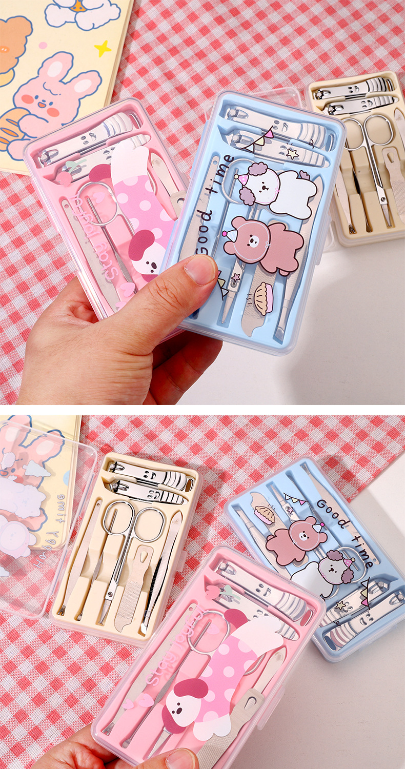 새로운 만화 네일 아트 세트 PP 박스 네일 아트 스테인리스 7종 세트 귀여운 손톱깎이 세트 소녀용스토어 가기