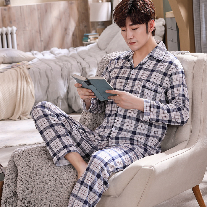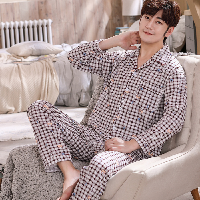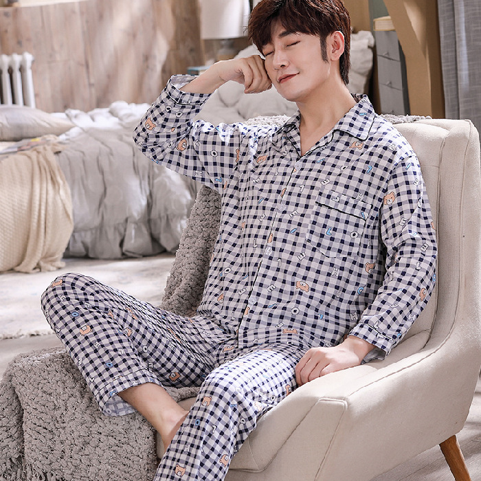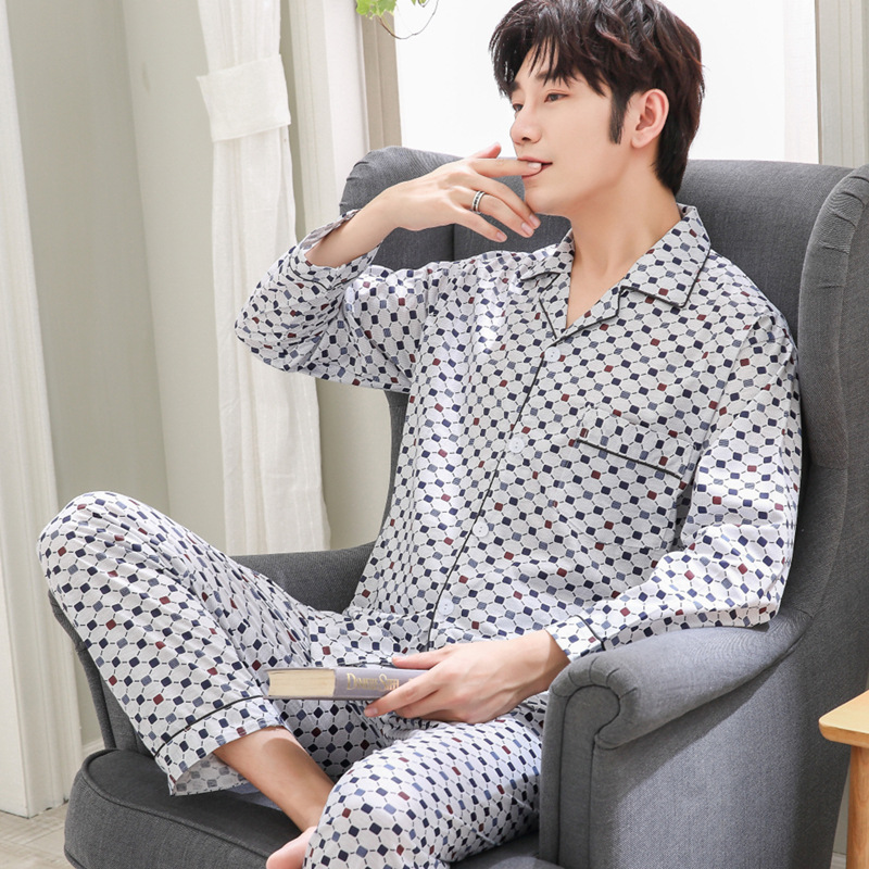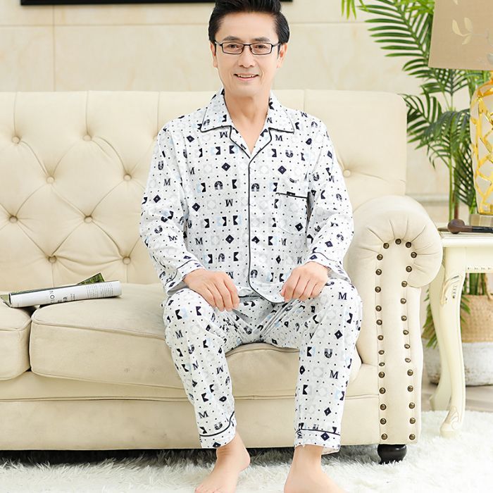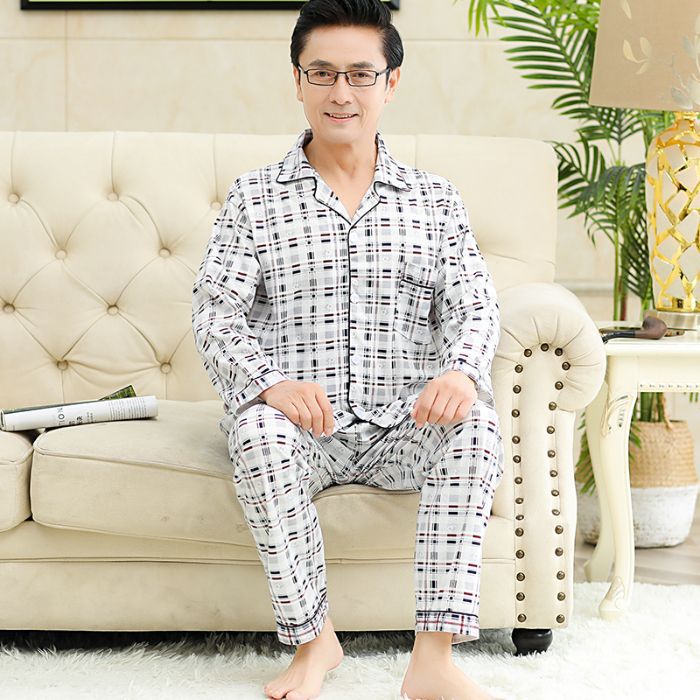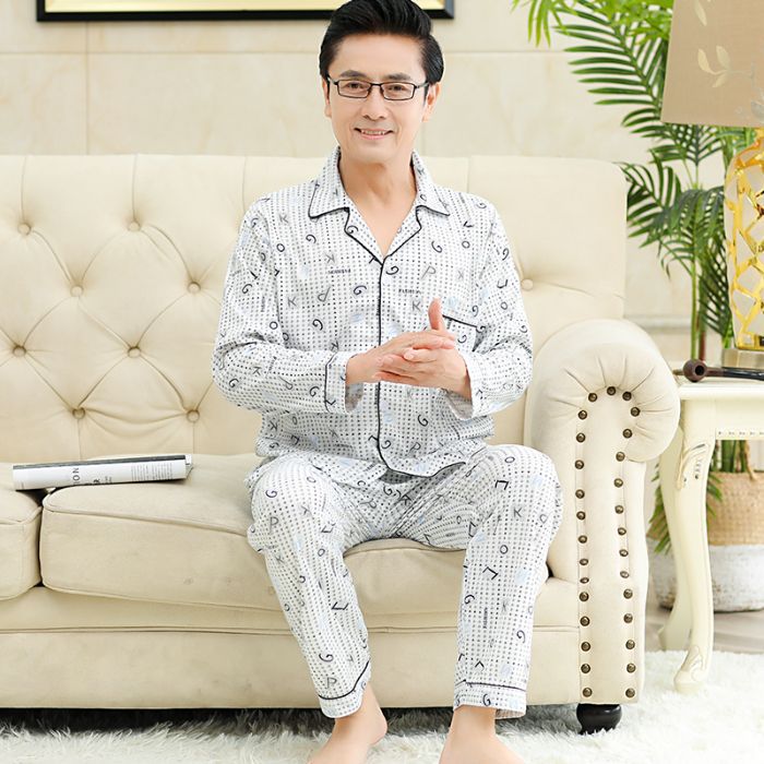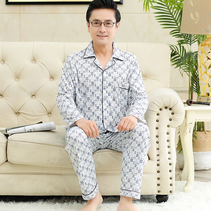 남성용 잠옷, 봄, 가을 얇은 니트 면 가디건, 라펠 긴팔 슈트, 중노년층 가정복, 통기성과 편안함스토어 가기