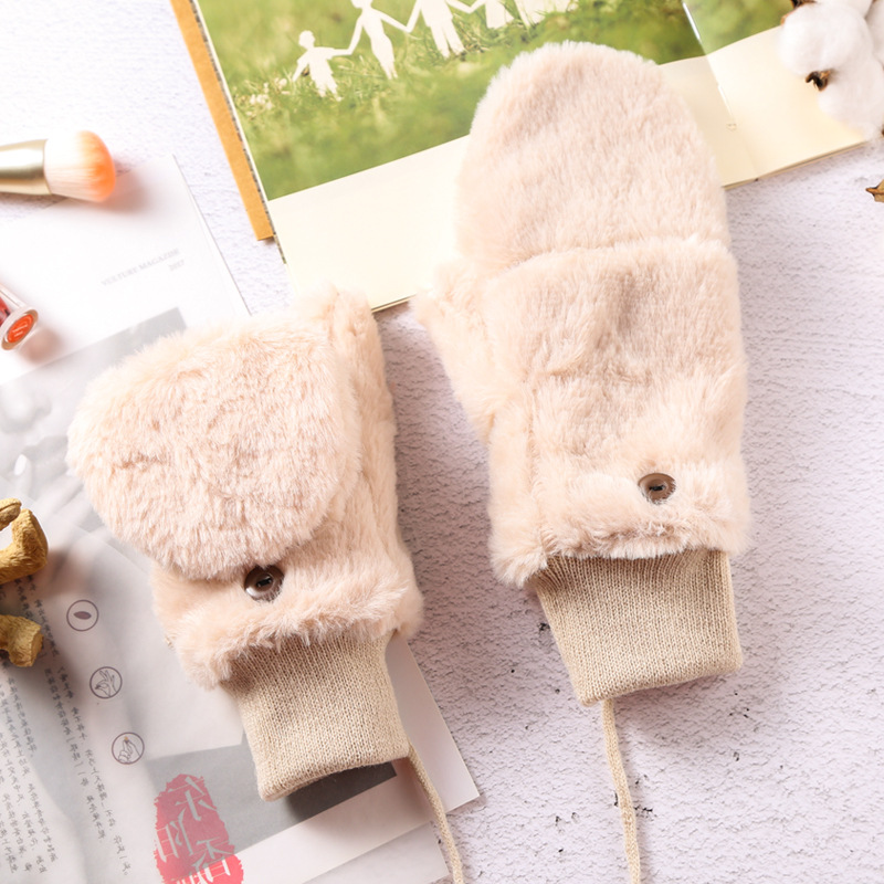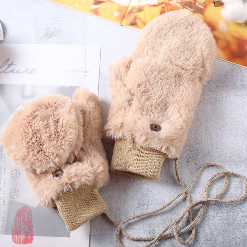 장갑 여자의 겨울 플립 한국 스타일 학생 기모 두꺼운 따뜻한 목 승마 여자의 장갑 패션 트렌드
